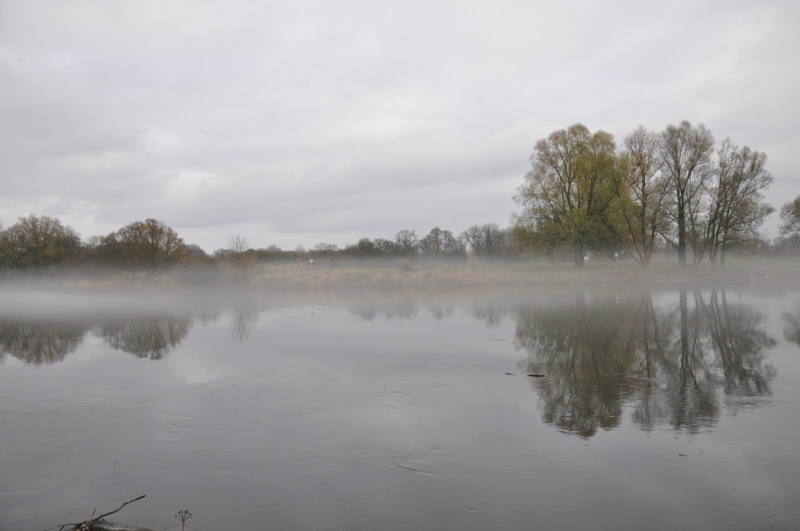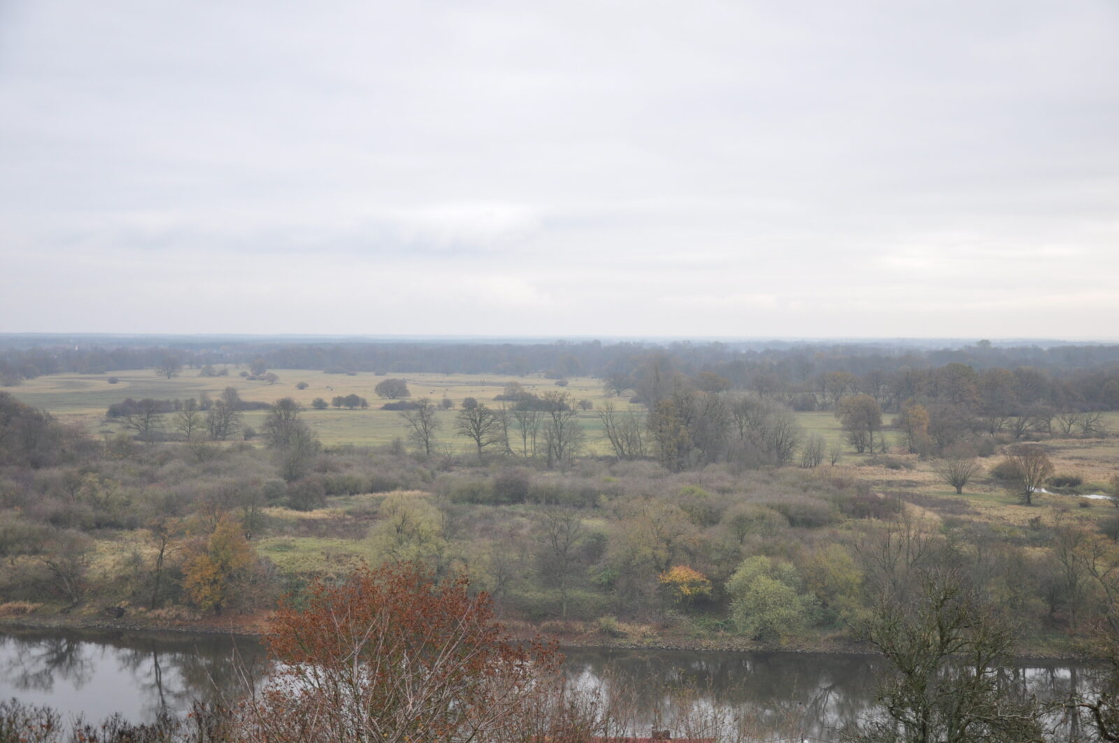 Teren grodziska widoczny z kopca oraz znad rzeki