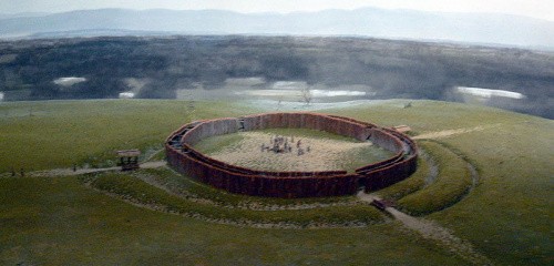 Makieta rondla z Künzing-Unternberg (ok. 4840-4590 p.n.e.). Podobnie jak w Bodzowie tu też występują dwa rowy i palisady. Zdjęcie na licencji Creative Commons. Autor: Wolfgang Sauber
