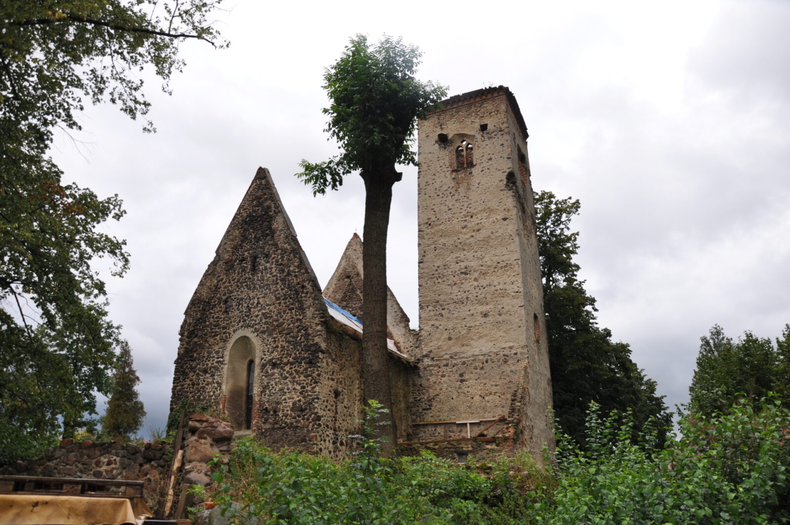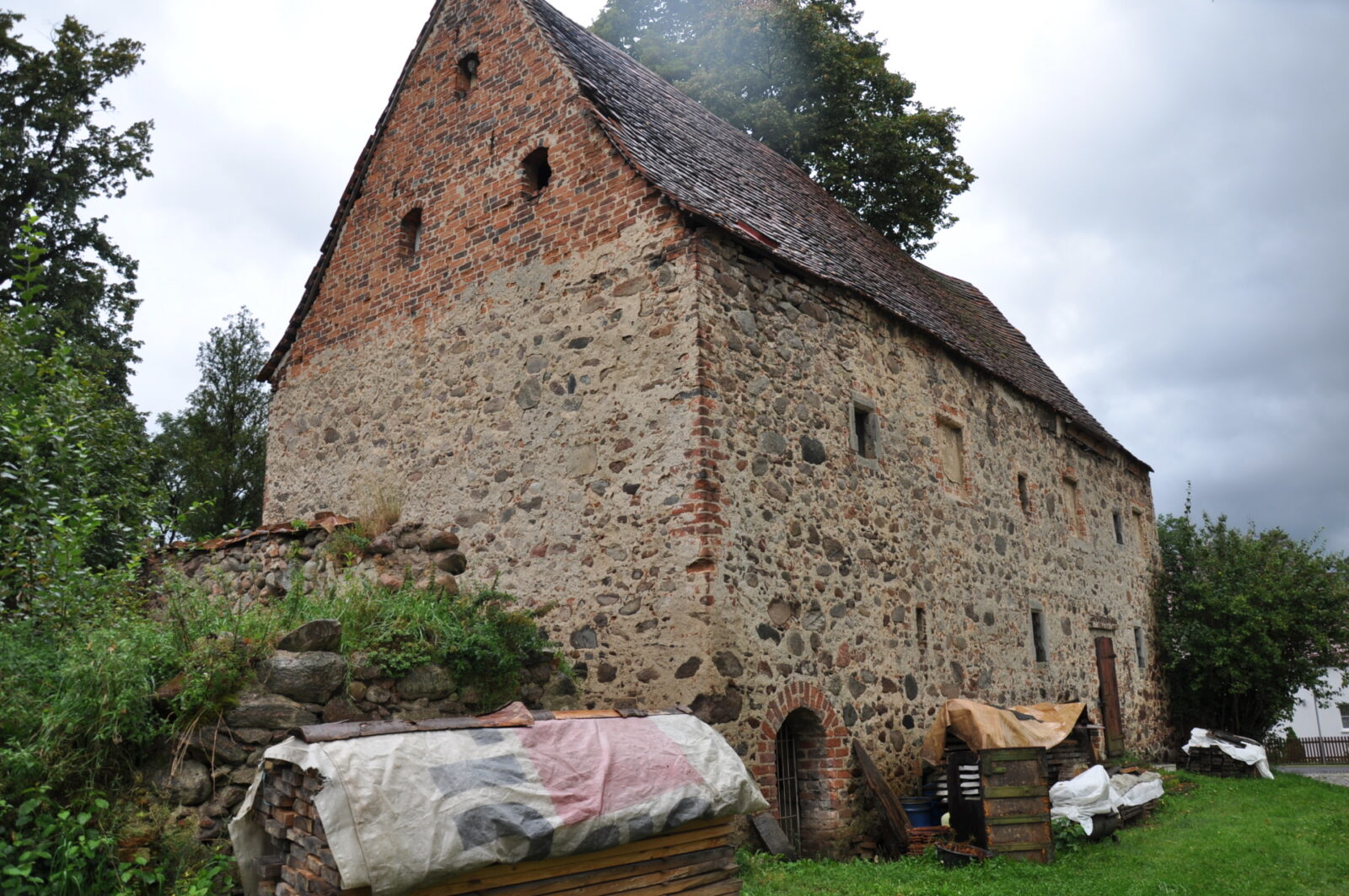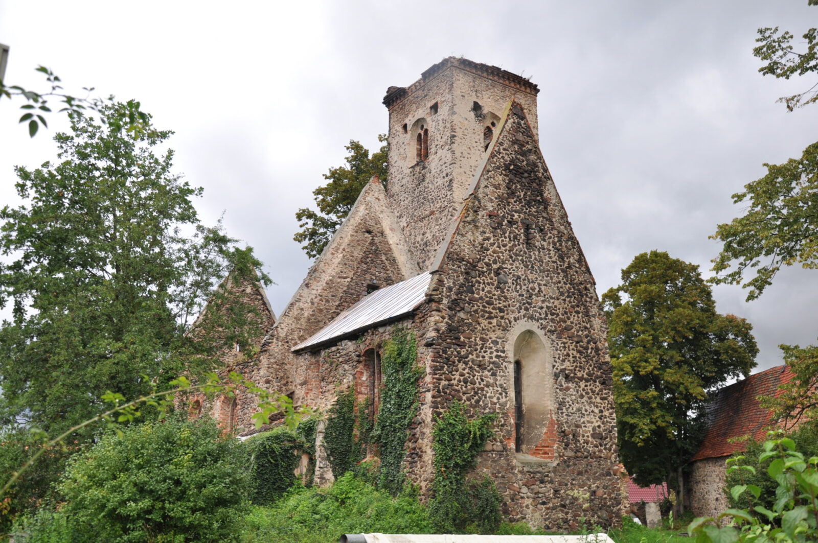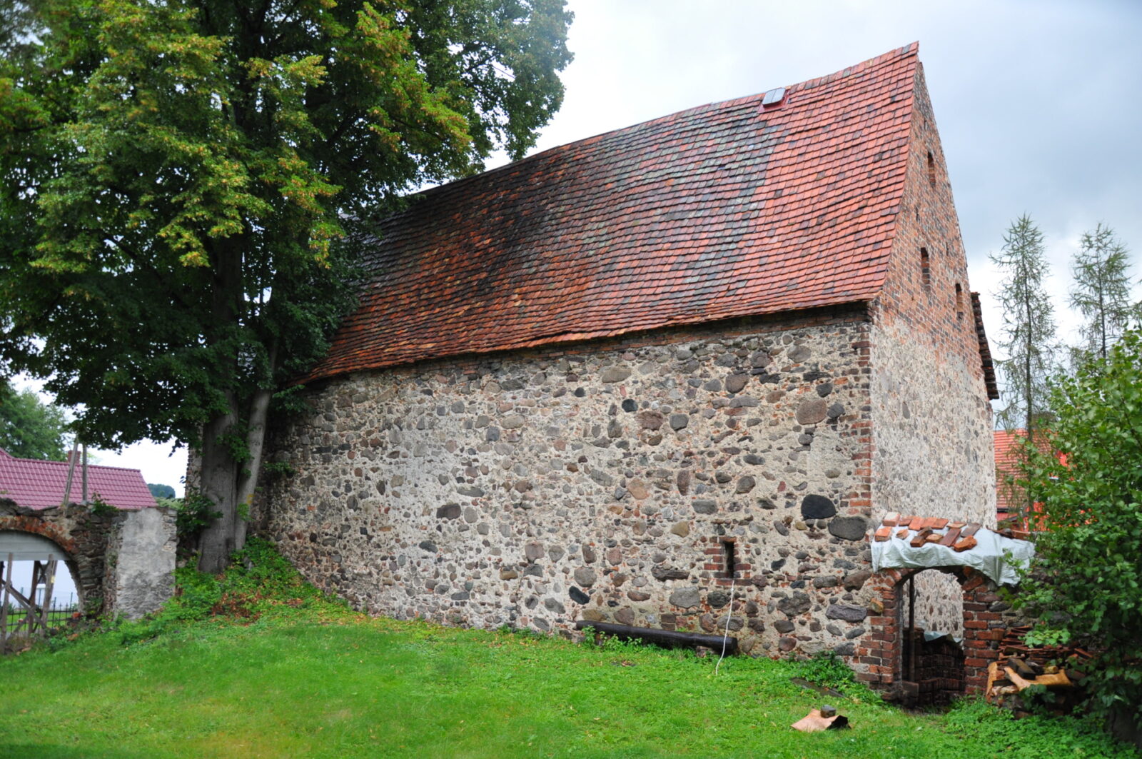Dwór wkomponowany jest w mur wokół kościoła, całe założenie jest naprawdę interesujące.