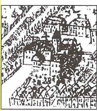zabudowa zamku na panoramie miasta F.B.Wernera z XVIII wieku