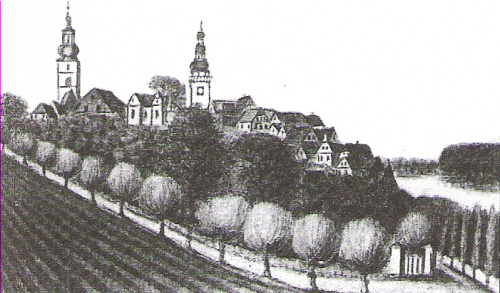 widok miasta z zamkiem od strony wschodniej, początek XIX wieku, rycina C.B.Schwarza
