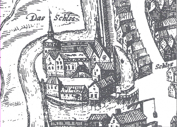 miasto i zamek na rycinie Wernera z XVIII wieku