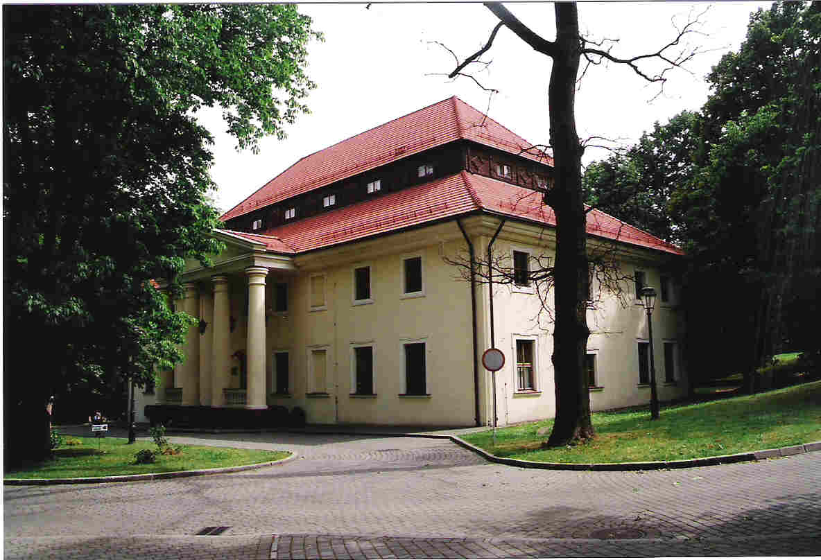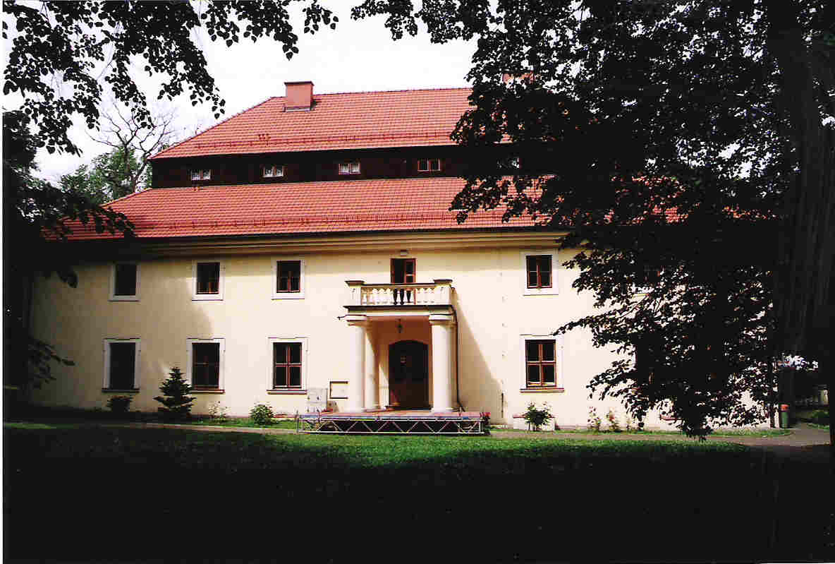 Dwór ma bardzo ciekawą historię – pierwsze wzmianki o nim datowane są na XIV wiek; następnie XV, kiedy to powstał tu obronny dwór Klausa Kesingera; następnie był on rezydencją rodu Trzebińskich, a w początkach XX wieku Pauliny i Mariana Zieleniewskich.Na przestrzeni wieków zmieniali się liczni właściciele, jak też sam obiekt. Obiekt pierwotnie posiadał cechy obronne, które utracił w czasie jego przebudowy. Obecny kształt został nadany w XVIII wieku. Jest to budynek częściowo podpiwniczony z charakterystycznym łamanym dachem polskim. Od frontu zwieńczono go czterokolumnowym portykiem.