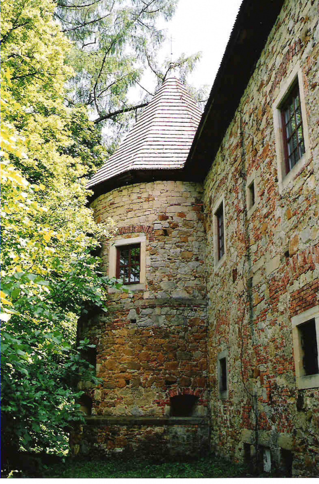 Gotycko - renesansowy dwór obronny został wzniesiony przez rodzinę Wieruszyckich, herbu Szreniawa w 1531 roku. Szybko go jednak przebudowano, zmieniając solidnie kształt budynku. Z prostokątnego dworu z dwoma wieżami alkierzowymi budynek przekształcił się w dwór prawie kwadratowy z jedną tylko, okrągłą wieżą. Dwór przykryty jest bardzo charakterystycznym, wysokim, dwudzielnym dachem pokrytym gontem. Wieża jest przykryta osobnym, ostrosłupowym dachem, także pokrytym gontem. Od strony południowej wejście osłania kamienny gotycki portal. Okna są mniejsze na dolnej kondygnacji, większe (renesansowe) na górnej. Dookoła dolnej kondygnacji wieży ciągnie się szereg strzelnic kluczowych. Wewnątrz zachowane są sklepienia kolebkowe w dolnej kondygnacji. W piwnicach pozostało kilka portali; na jednym z nich widnieje data budowy - 1531 rok.Po ostatniej wojnie dwór był w stanie daleko posuniętej dewastacji, gdyż wcześniej użytkowano go jako spichlerz. Po przejęciu go przez prywatnego właściciela rozebrano zrujnowane dobudówki i przywrócono obiektowi dawny wygląd