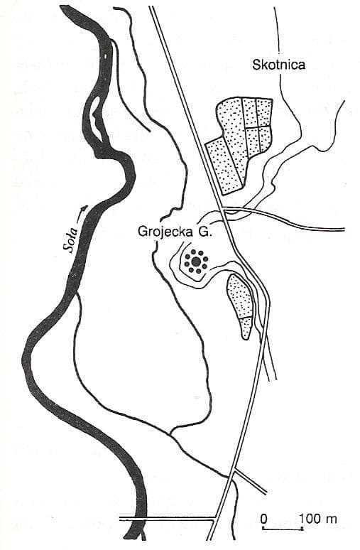 Grodzisko położone jest na "Grojeckiej Górze", po prawej stronie Soły, ok. 6,5km na południowy-wschód od Oświęcimia. W trakcie prowadzonych badań na terenie grodziska znaleziono dużą ilość zabytków reprezentujących końcową fazę kultury łużyckiej co pozwala przypuszczać, że funkcjonowało ono w tym właśnie czasie.