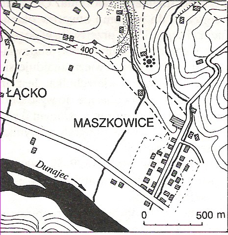Maszkowice położone są w dolinie Dunajca, na południe od Nowego Sącza. Region w którym leży miejscowość, zwany Ziemią Łącką, słynie z sadownictwa oraz z szczególnego piękna podgórskiego krajobrazu. Miejscowość Maszkowice znana jest jednak głównie dzięki wznoszącej się nad nią „Górze Zyndrama”. Wzgórze to – usytuowane w centrum wsi, naprzeciw szkoły – wzięło swoją nazwę od imienia wodza spod Grunwaldu – Mikołaja Zyndrama z Maszkowic. Zyndram, rycerz polski urodzony około połowy XIV wieku, w czasie bitwy grunwaldzkiej dowodził wojskami polskimi. Osobiście poprowadził też do ataku chorągiew ziemi krakowskiej. Według źródeł historycznych jego siedzibą były właśnie Maszkowice w gminie Łącko. Legenda Zyndrama z Maszkowic jest żywa po dziś dzień, a tradycja ludowa od niepamiętnych czasów wiąże postać dzielnego rycerza z pozostałościami grodu znajdującymi się na wzgórzu górującym nad wsią. Patrząc na widoczne w terenie ślady wału i fosy oraz na dużą ilość wielkich kamieni, przyniesionych na szczyt wzgórza z doliny Dunajca staje się jasne dlaczego – według mieszkańców Maszkowic – w miejscu tym stać miało zamczysko wodza spod Grunwaldu.