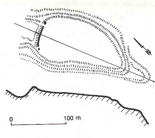 Na przełomie okresów halsztackiego i lateńskiego powstał w tym miejscu kolejny gród. Na miejscu zniszczonej osady zbudowano wał kamienny i dostosowano kształt powierzchni wzgórza do nowej osady grodowej kiedy to podcięto zbocze i wykopano fosę. Wał o szerokości u podstawy 7m i wysokości ok. 4-5m zbudowany był z kamienia łączonego z gliną i licowany z obydwu stron płaskimi kamieniami. Tego typu fortyfikacje kamienne są ewenementem na terenie Polski.