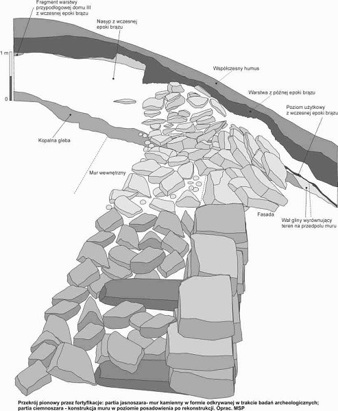 Schemat konstrukcji muru z epoki brązu w Maszkowicach. Rys. M.S. Przybyła
