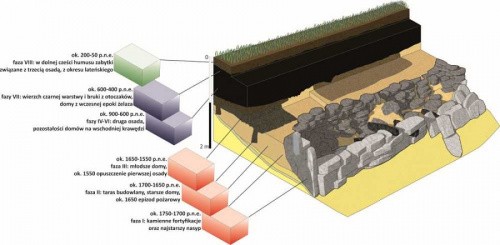 Tymczasem w zeszłym roku archeolodzy odsłonili duży fragment monumentalnego, kamiennego muru, który osłaniał półhektarową osadę ponad 3,5 tys. lat temu.