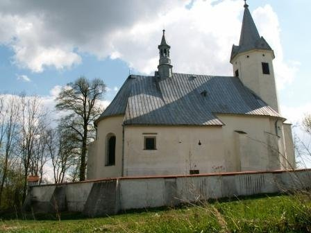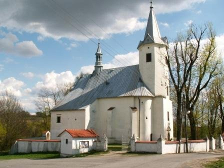 Wczesnobarokowy kościół powstał w 1623 r. Pełnił jednocześnie funkcje obronne o czym świadczą strzelnice kluczowe we wieży, koło kruchty oraz w zakrystii. Legenda mówi, że kościół z zamkiem łączy tunel, co byłoby nawet logiczne i zważywszy na niewielką odległość dzielącą oba obiekty całkiem realne (fot. kwiecień 2009).