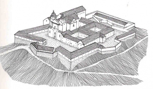 klasztor pod koniec XIX wieku na rysunku T.S.Łosika