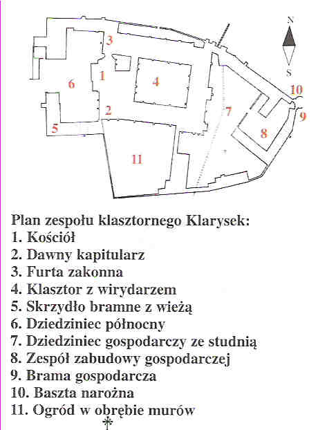 Klasztor Zakonu świętej Klary zwany też Zakonem Klarysek został wybudowany w XIII wieku przez Kingę, zonę Bolesława Wstydliwego. Przypuszcza się, że już w tym wieku klasztor posiadał fortyfikacje. Na pewno w XV wieku zabudowania klasztorne były już otoczone murowanym murem. Były wzniesione z łamanego kamienia. Na przełomie XVI/XVII wieku kardynał Jerzy Radziwiłł nakazał podwyższenie murów i zaopatrzenie ich w strzelnice. Równocześnie rozebrano kilka zniszczonych baszt. Wówczas też mury otynkowano.