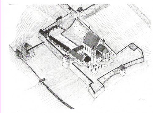 rekonstrukcja widoku klasztoru w I połowie XVII wieku.