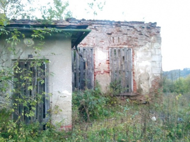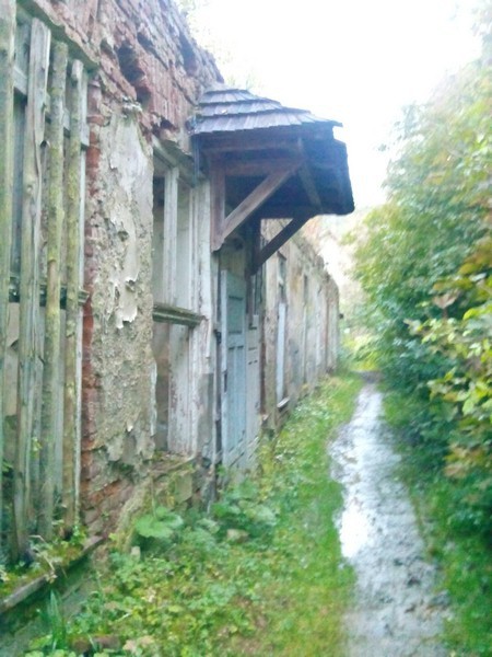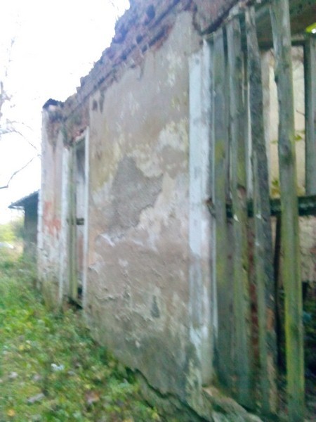 w miejscu dawnego zamku z XVI wieku, zrujnowany dwór z lat 30-tych XX wieku