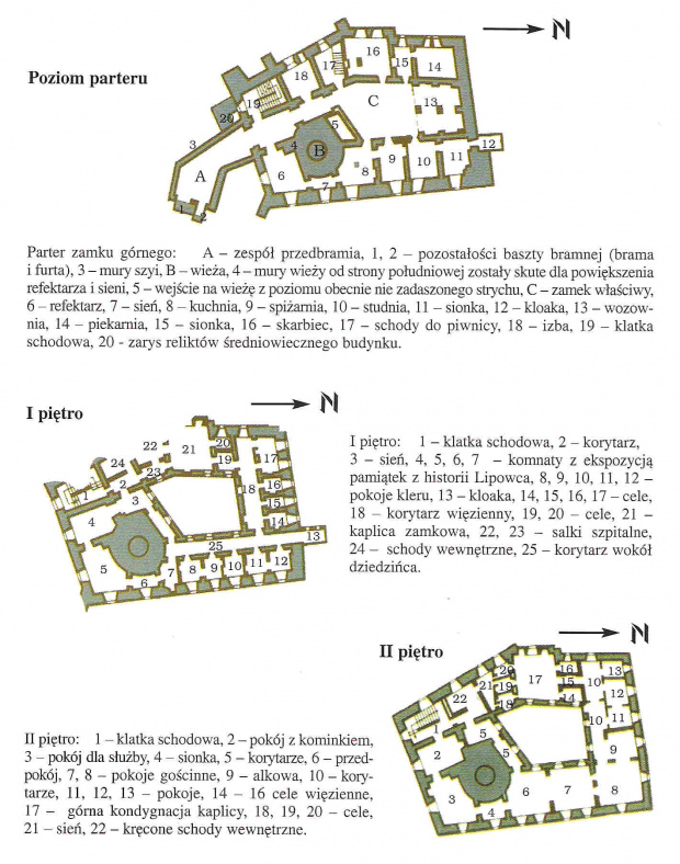 plan poszczególnych kondygnacji zamkowych