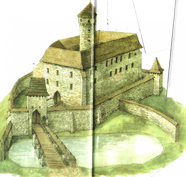 rekonstrukcja zamku z XVI wieku wg.T.Małkowskiej-Helcerowej z uzupełnianiami J.Salma