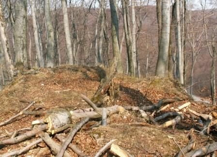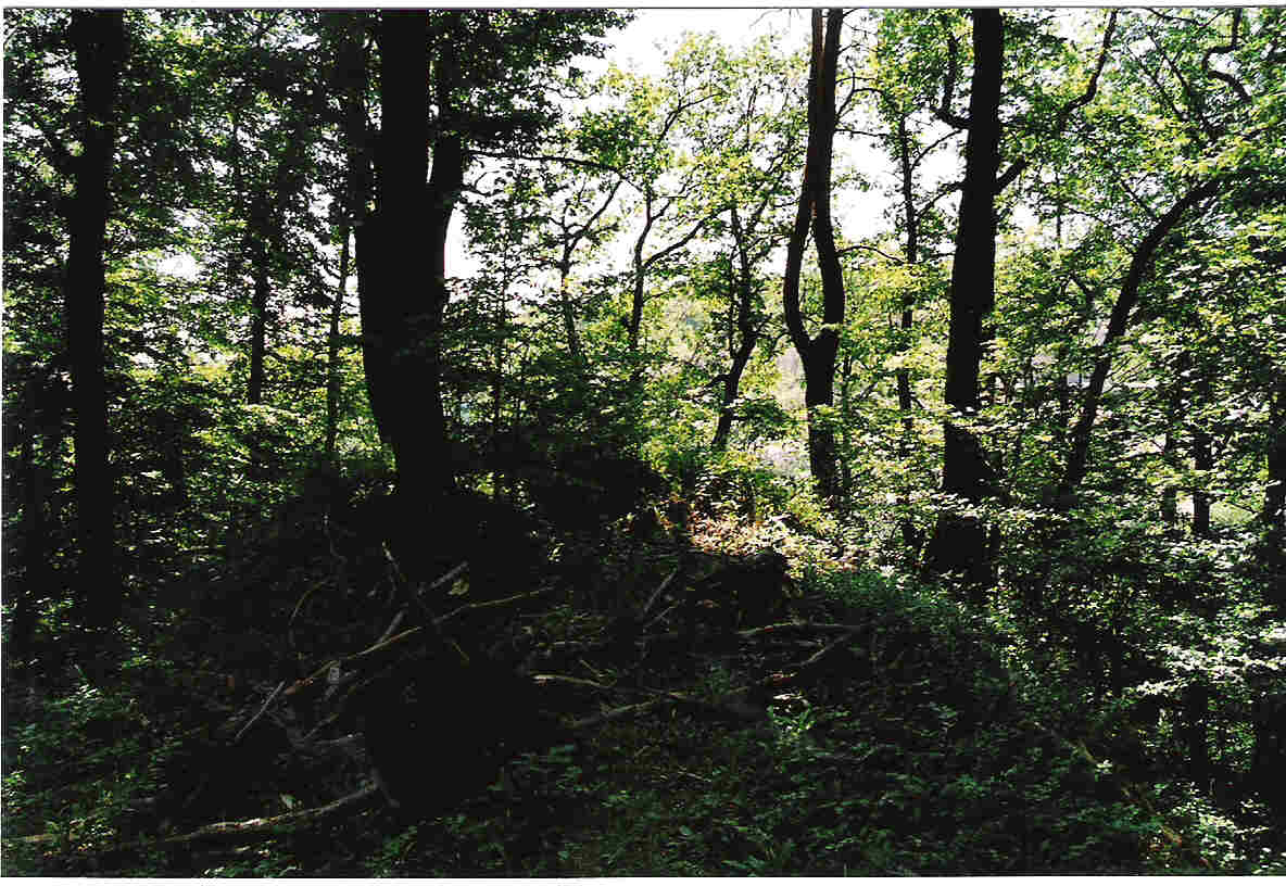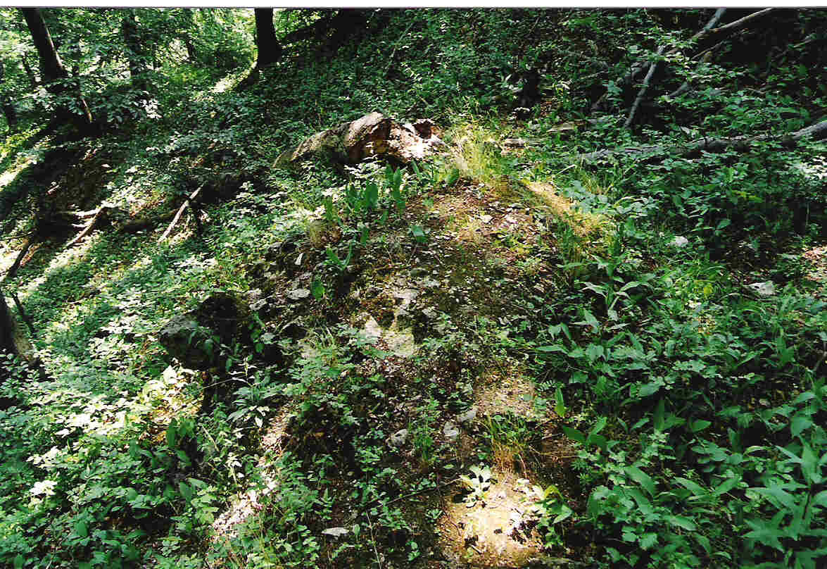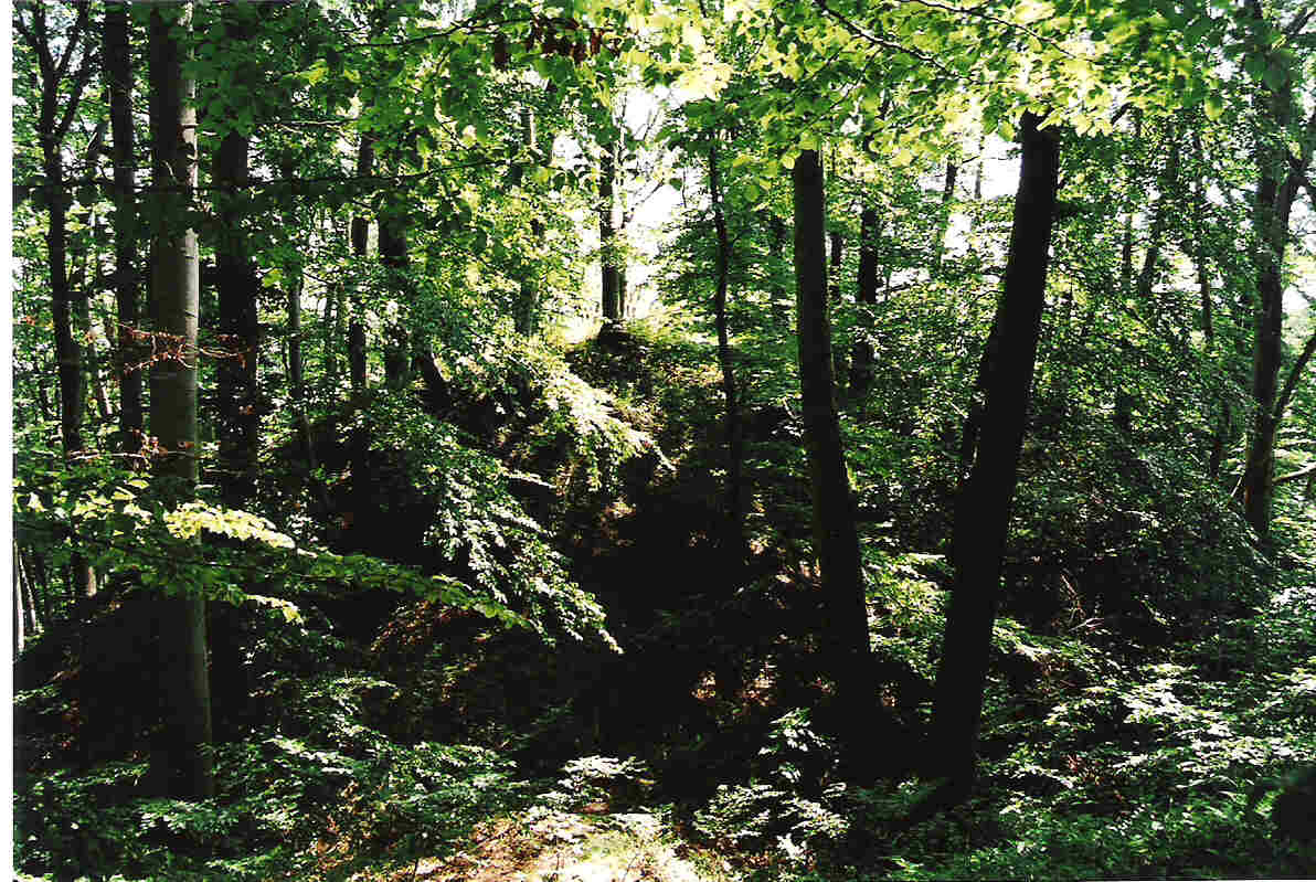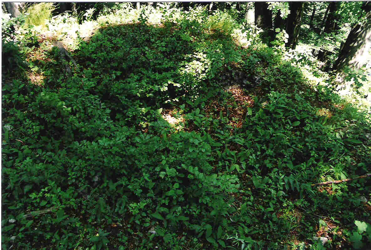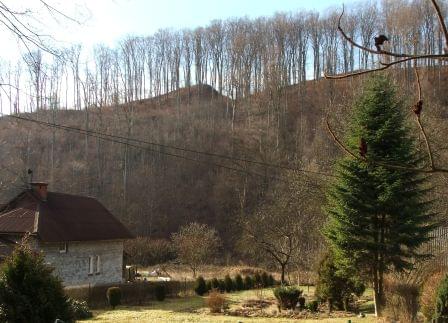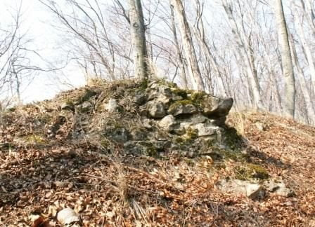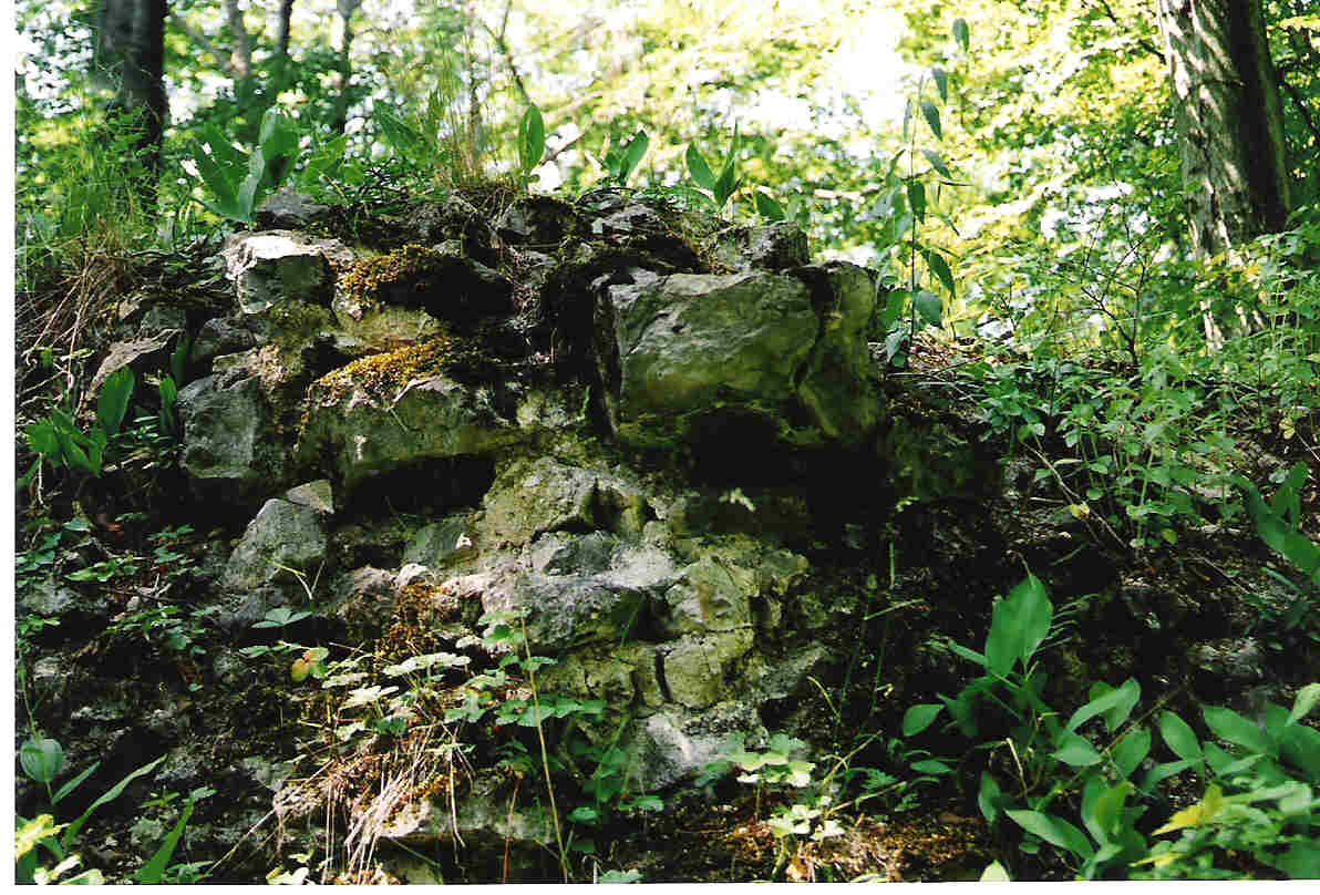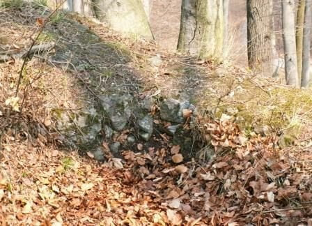 Wieża we wczesnowiosennej scenerii. Widać trochę więcej niż na zdjęciach Becika, bo nie ma trawy i liści. Kiedy byłem tam w kwietniu 2008 roku o ruinach nie wiedział nikt, co kogo we wsi zapytałem patrzył na mnie jak na wariata.