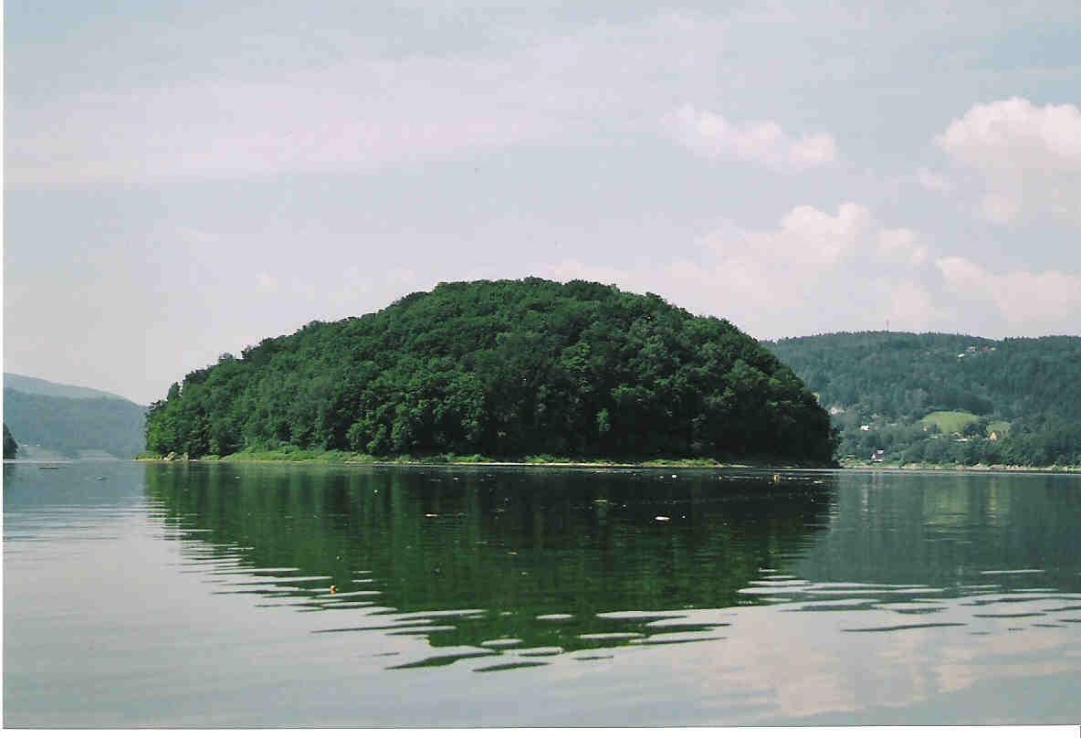 GPS-em nie dysponuje, niestety. Pozostałości zamku (pewnie obecnie tylko ziemne), znajdują się na samym szczycie wzniesienia na części bliższej do wsi (tam gdzie biegnie droga od N.Sącza). Na teren rezerwatu wszedłem po uzyskaniu zgody (pisemnej) z Małopolskiego Urzędu Wojewódzkiego. Swoje przybycie zgłosiłem na miejscu policji, sa gotowi nawet sami podrzucić na wyspę. To co widać na zdjęciu to widoczny wkop, oczywiście nielegalny. na zdjęciach widać kamienne elementy, które mogły byc sklepieniem piwnicy widocznej na innym zdjęciu. To co widać to na pewno jest piwnica (jej górna część) wchodzenia tam nie ryzykowałem bo była tam po prostu dziura, a latarki ze sobą nie brałem. oczywiście ten wkop zgłosiłem później na policję, co z tym zrobili, czy zakopali/zasypali - nie mam pojęcia.