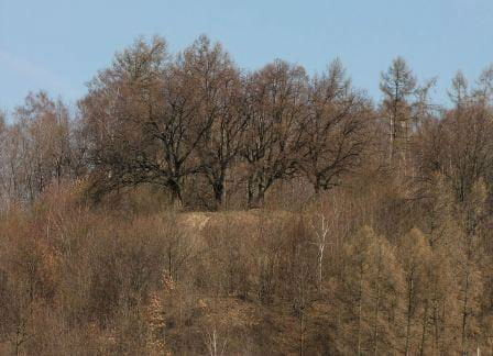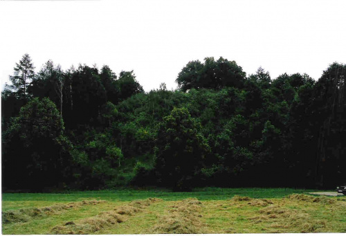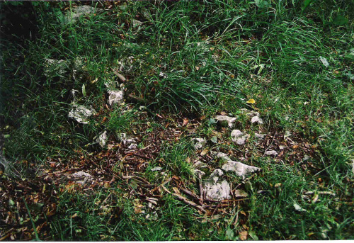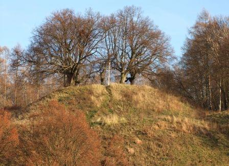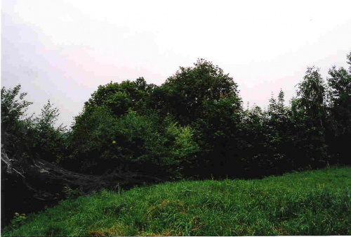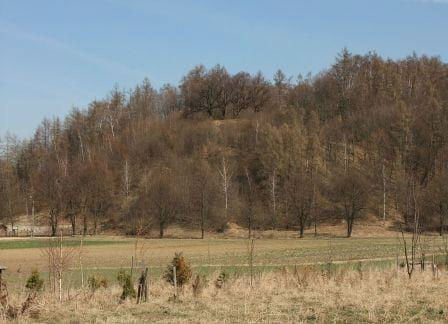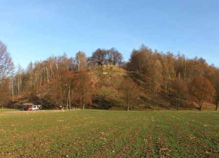 Kopiec po wieży odchwaszczony, pod kopcem, obok parkingu, polski syf. (fot. luty 2016)