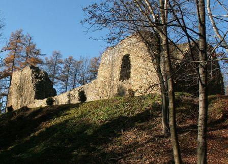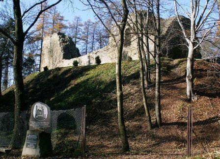 1. Ruiny zamku wraz z najbliższym otoczeniem.