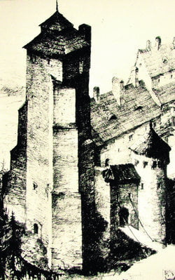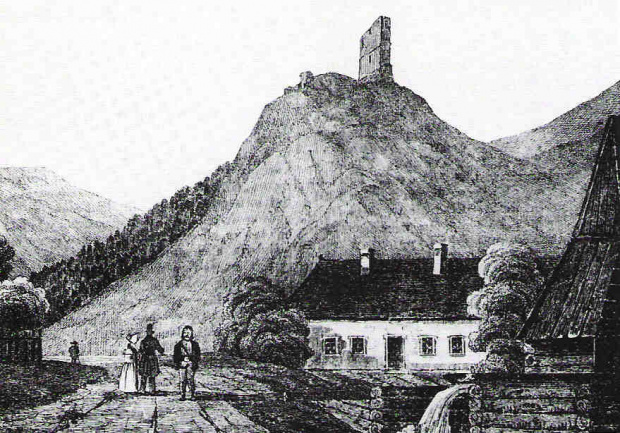 zamek w Muszynie na rysunku z "Przyjaciela Ludu" 1837