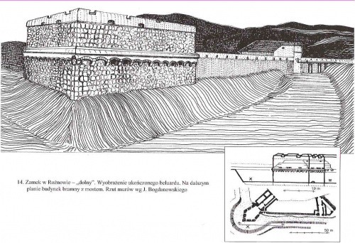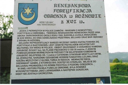 W połowie XVI wieku hetman Jan Amor Tarnowski rozpoczął około 1568 roku budowę nowożytnego zamku bastionowego. Zamek nigdy nie został ukończony. Obecnie zachowały się jedynie budynek bramny, kurtyny i beluard będący prototypem bastionu. Wzniesiony był na planie wydłuzonego pięcioboku nakrytego kopulastym sklepieniem z otworami wentylacyjnymi. Beluard w Roznowie nalezy do najwcześniejszych w Polsce zabytków nowożytnej fortyfikacji.