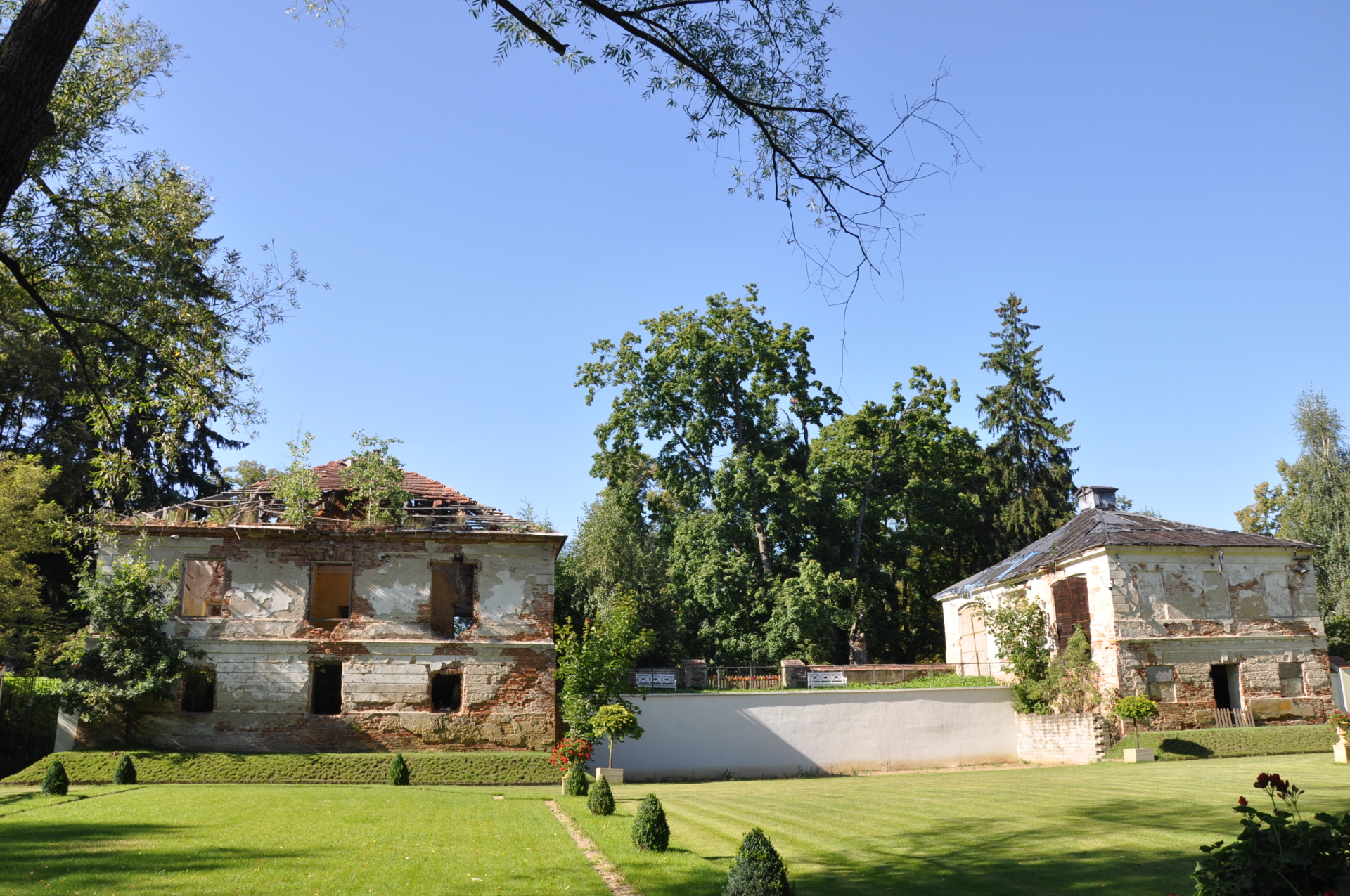 Dwór nie istnieje, w jego miejscu od fundamentów jest stawiany nowy dwór