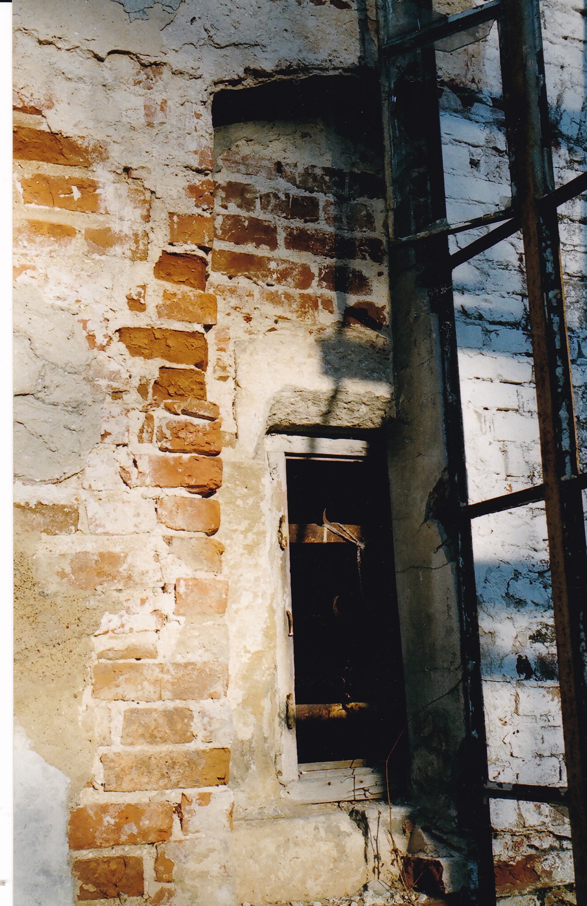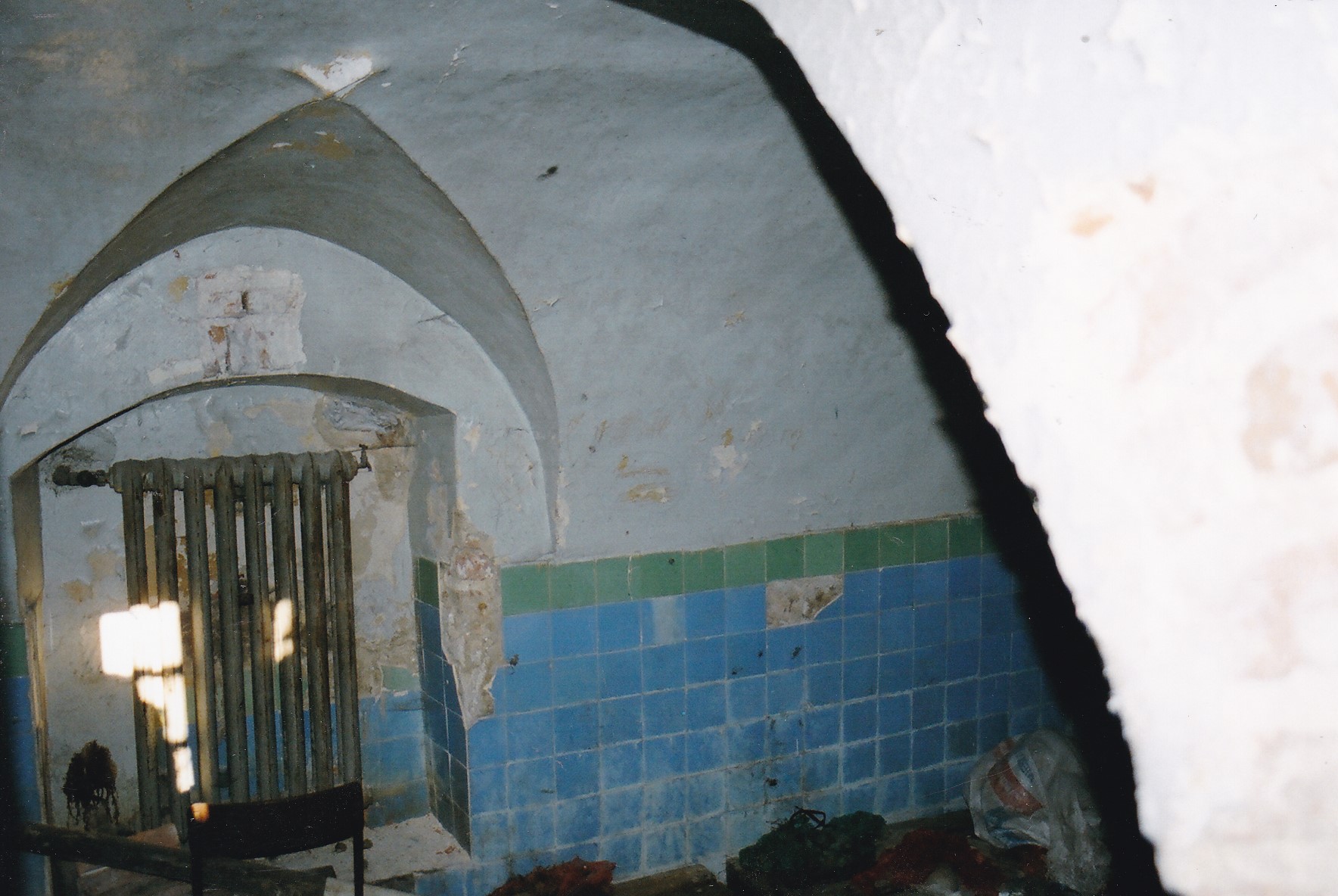 Na zdjęciach powyżej oprócz samego pałacu/dworu fragment częściowo zamurowanego obramienia okiennego i jedno z pomieszczeń z lunetą