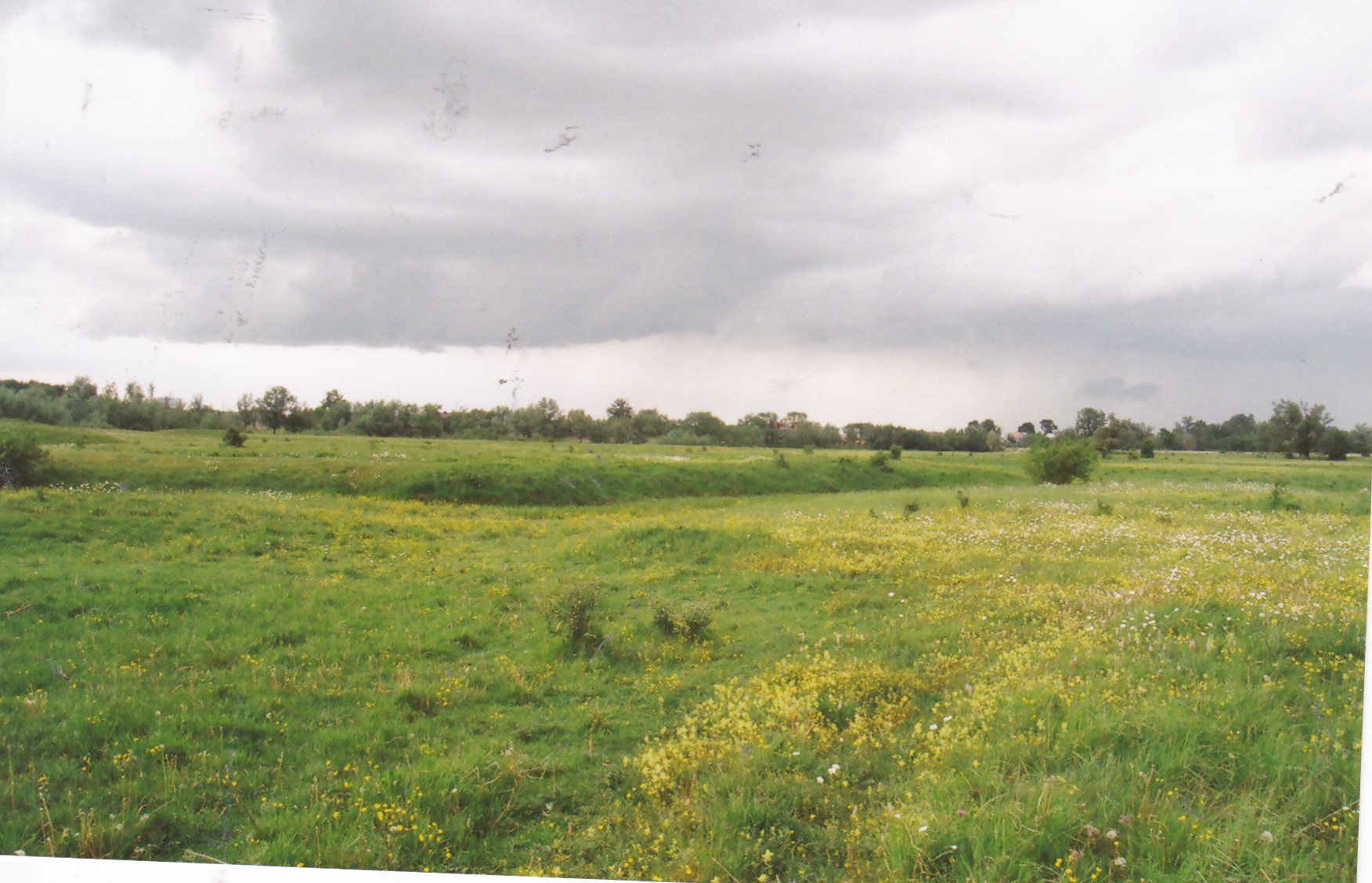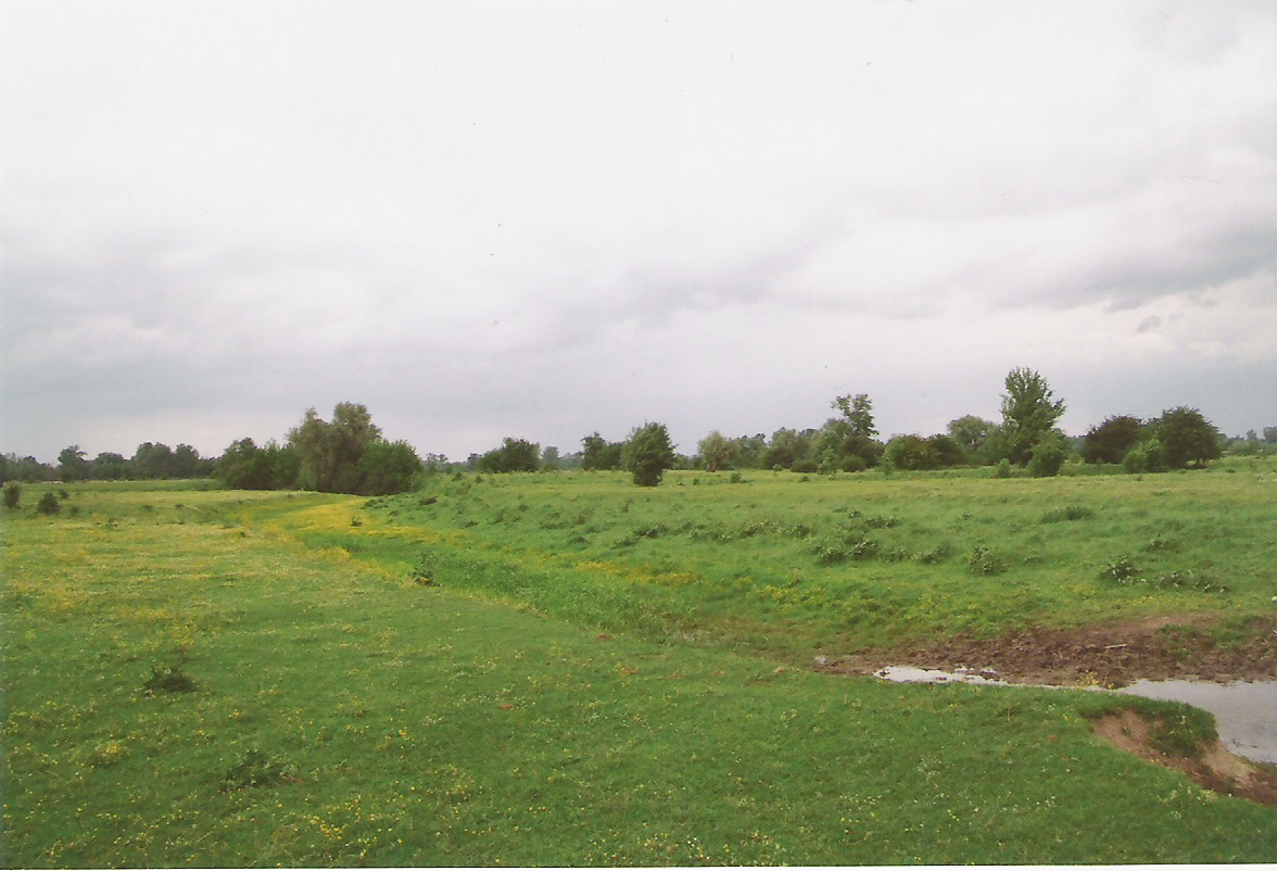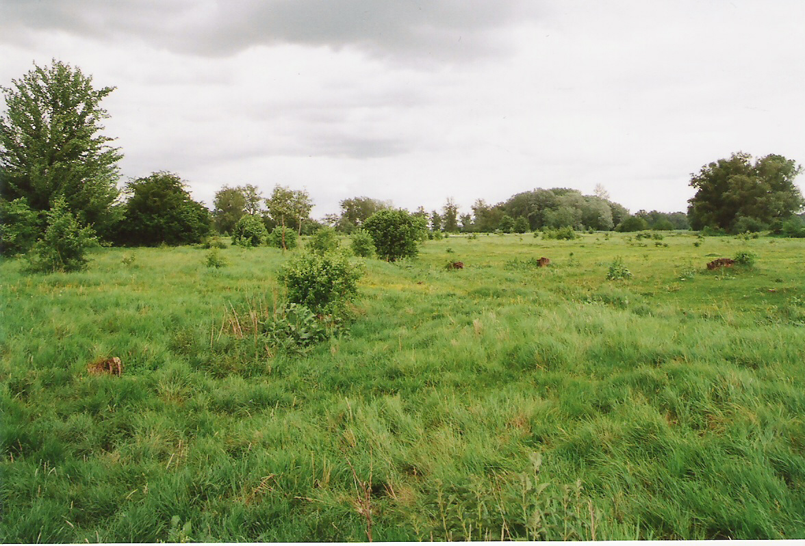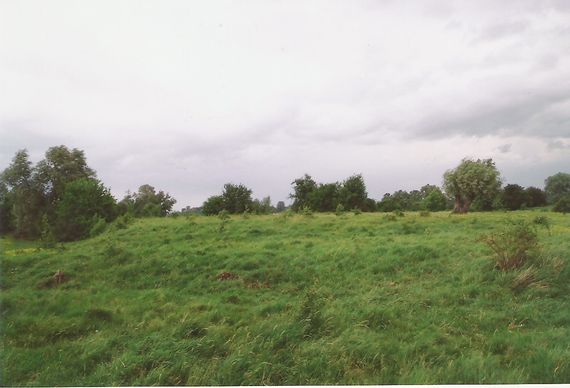 Teren za dawnym korytem Radomki, widać lekkie wzniesienie, które moim zdaniem i zdaniem miejscowego sołtysa mogło być terenem po zamku/dworze
