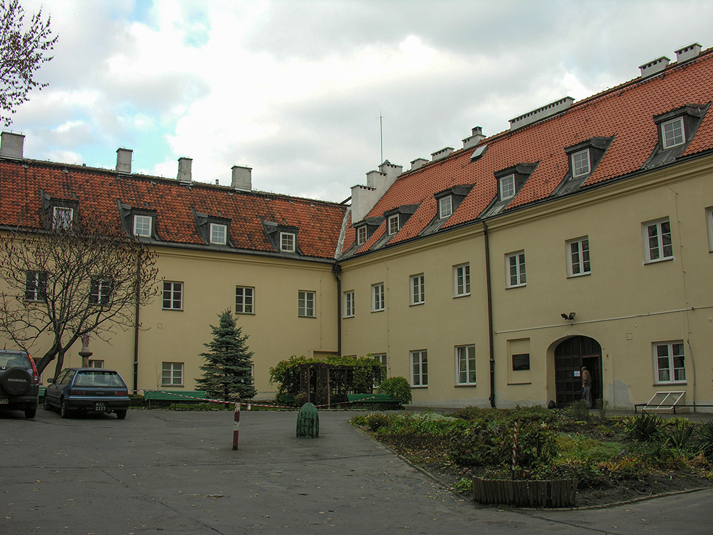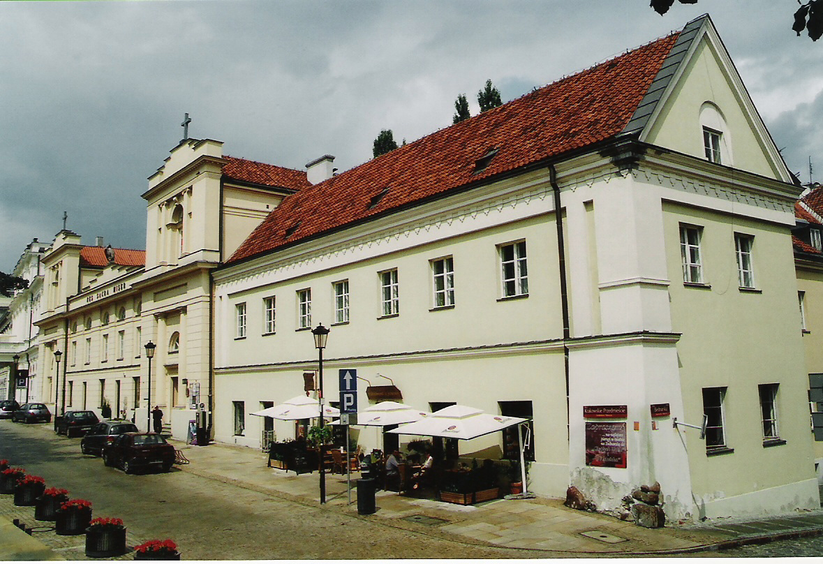 Pierwotnie renesansowy pałac zbudowany został w pierwszej połowie XVII wieku. Został przekształcony po 1663 w klasztor i kościół zakonu karmelitanek bosych. Od 1818 siedziba Towarzystwa Dobroczynności Res Sacra Miser, a od 1989 – Towarzystwa Charytatywnego Caritas A.W. Zlokalizowany jest w Warszawie przy ul. Krakowskie Przedmieście 62 w dzielnicy Śródmieście.