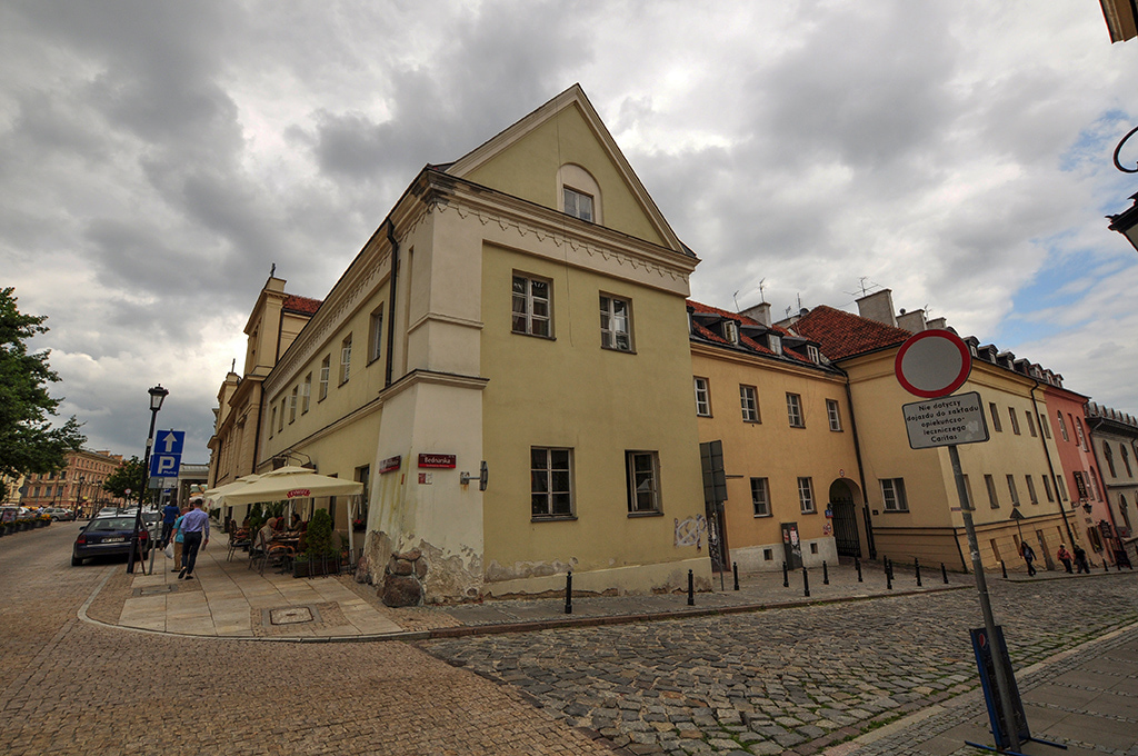 Jednak pałac Kazanowskich można uznać za budowlę obronna gdyż: Jak ustaliła badaczka architektury warszawskiej XVII wieku Jolanta Putkowska, od strony Krakowskiego Przedmieścia pałac poprzedzony był fosą i parterowym budynkiem z bramą. Od ulicy wchodziło się do niego przez most zwodzony. W głębi, wokół dużego, kawadratowego dziedzińca stały boczne skrzydła, na samym stoku skarpy wiślanej wznosił się czterokondygnacyjny pałac.