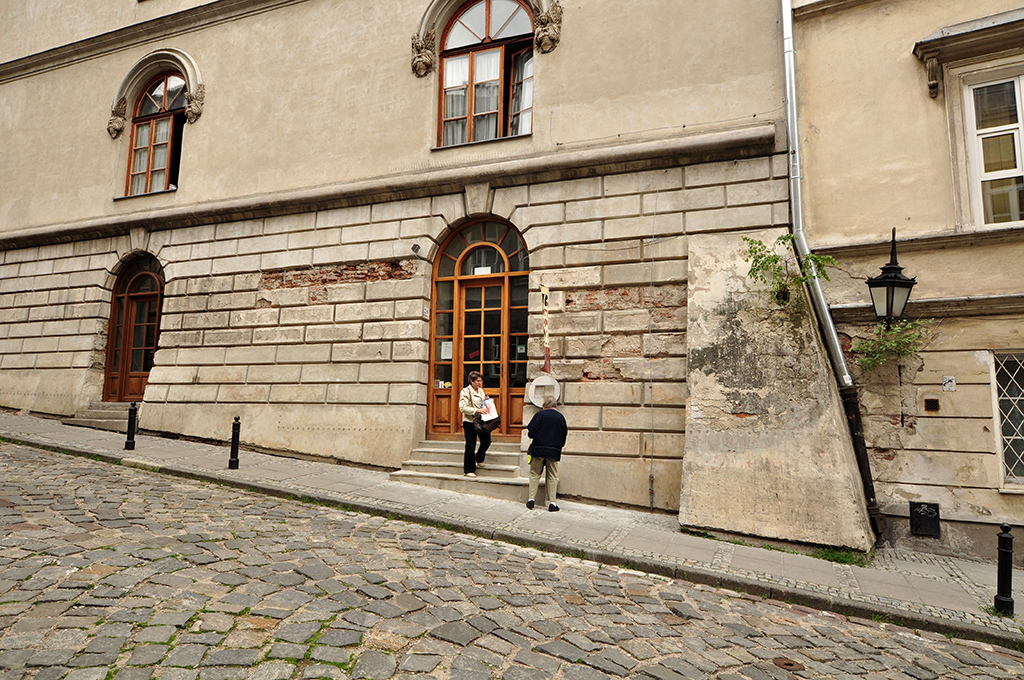 Kilka razy próbowałem wejść na dziedziniec, żeby sprawdzić w jakim stanie jest karczoch z elewacji - ale mi się nie udało.