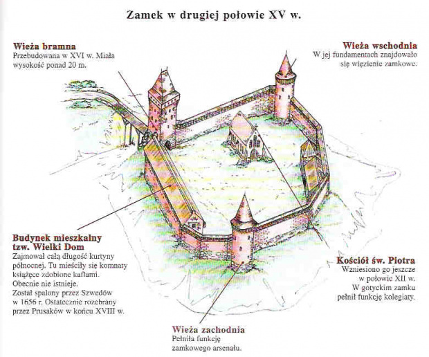 rekonstrukcja zamku wg T.Zagrodzkiego z uzupełnieniami J.Salma (źr.Leksykon Zamków...str.140)