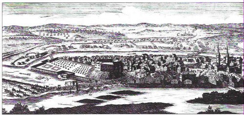 miasto i zamek na miedziorycie Pingelinga - "bitwa pod Pułtuskiem-1703r."
