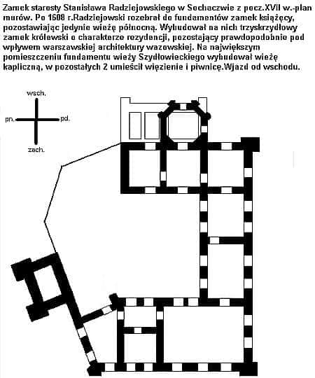 Odkrycie to widać już przy wejściu na górę zamkową. Sygnalizują je kamienie fundamentu, jakie odsłonięto tuż przy betonowych schodkach prowadzących na górę. Łukasz Popowski, pasjonat zamku i założyciel Stowarzyszenia na Rzecz Historycznej Odbudowy Zamku w Sochaczewie „Nasz Zamek”, ma już pewną koncepcję na ten temat. Jego zdaniem odkryte mury to fragmenty wieży bramnej, która usytuowana była w tej części, co późniejsza wieża kapliczna Stanisława Radziejowskiego. Brama ta miała kształt prostokąta, około 12 m długości i 15-20 m wysokości (3 kondygnacje). Zdaniem Łukasza Popowskiego, to element zamku Książąt Mazowieckich, z tym, że po przebudowie, prawdopodobnie przez starostę Szydłowieckiego. Wieża z tego okresu miała trzy lokalności (pomieszczenia). Przez środkowe odbywał się przejazd, po bokach znajdowały się arsenał i sala dla sądów grodzkich. Na największym z tych pomieszczeń, w XVII w. starosta Radziejowski zbudował ośmiokątną wieżę kapliczną.