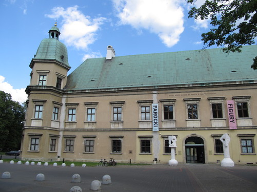 Znajduje się na miejscu dawnej osady Jazdów, która została zniszczona w 1262 po najeździe Litwinów. W 1516 roku w dworze w Jazdowie mieszkała księżna mazowiecka Anna z synami Januszem i Stanisławem, a później po 1546 roku czasami królowa Bona Sforza, której Jazdów był własnością. W latach 70. XVI wieku królowa Anna Jagiellonka kazała zbudować nowy piętrowy drewniany dwór na północ od dzisiejszego zamku. W dworze tym odegrano przed królem Stefanem Batorym sztukę Jana Kochanowskiego "Odprawa posłów greckich". Murowany zamek zaczęto budować w roku 1624 na polecenie króla Zygmunta III Wazy pod kierunkiem nadwornego architekta Matteo Castelli w stylu wczesnego baroku, a ukończono za panowania króla Władysława IV. W założeniu miała to być nieoficjalna rezydencja królewska villa suburbia z trójarkadową loggią z widokiem na dolinę Wisły. Zamek, będący w istocie budowlą repreznetacyjną, a nie obronną, łączy w sobie cechy pólnocnoeuropejskie (wieże, strome dachy) z cechami wczesnego baroku rzymskiego (symetria, amfilady). Budowla ta najpełniej uosabia polski styl wczesnego baroku. Za czasów Potopu został zniszczony i ponownie odbudowany. W 2 poł. XVII wieku właścicielem pałacu stał się Stanisław Herakliusz Lubomirski, kóry kazał Tylmanowi z Gameren przebudować wnętrza. W 1717 roku na polecenie króla Augusta II Mocnego zbudowano pod pałacem Kanał Piaseczyński o długości 820 metrów. W 1766 roku, pałac kupił król Stanisław August Poniatowski, który go znacznie przebudował. W 1784 roku, król przekazał pałac na koszary Gwardii Pieszej Litewskiej dlatego pałac znowu przebudowano. Tym razem w stylu klasycystycznym (proj. Stanisław Zawadzki). Od 1809 znajdował się w nim szpital wojskowy. Podczas II wojny światowej został ponownie zniszczony. W 1954 komunistyczne władze zadecydowały o zburzeniu ruin, lecz po 1973 roku pałac został odbudowany (proj. Piotr Biegański). Obecnie (od 1985) mieści się w nim Centrum Sztuki Współczesnej.