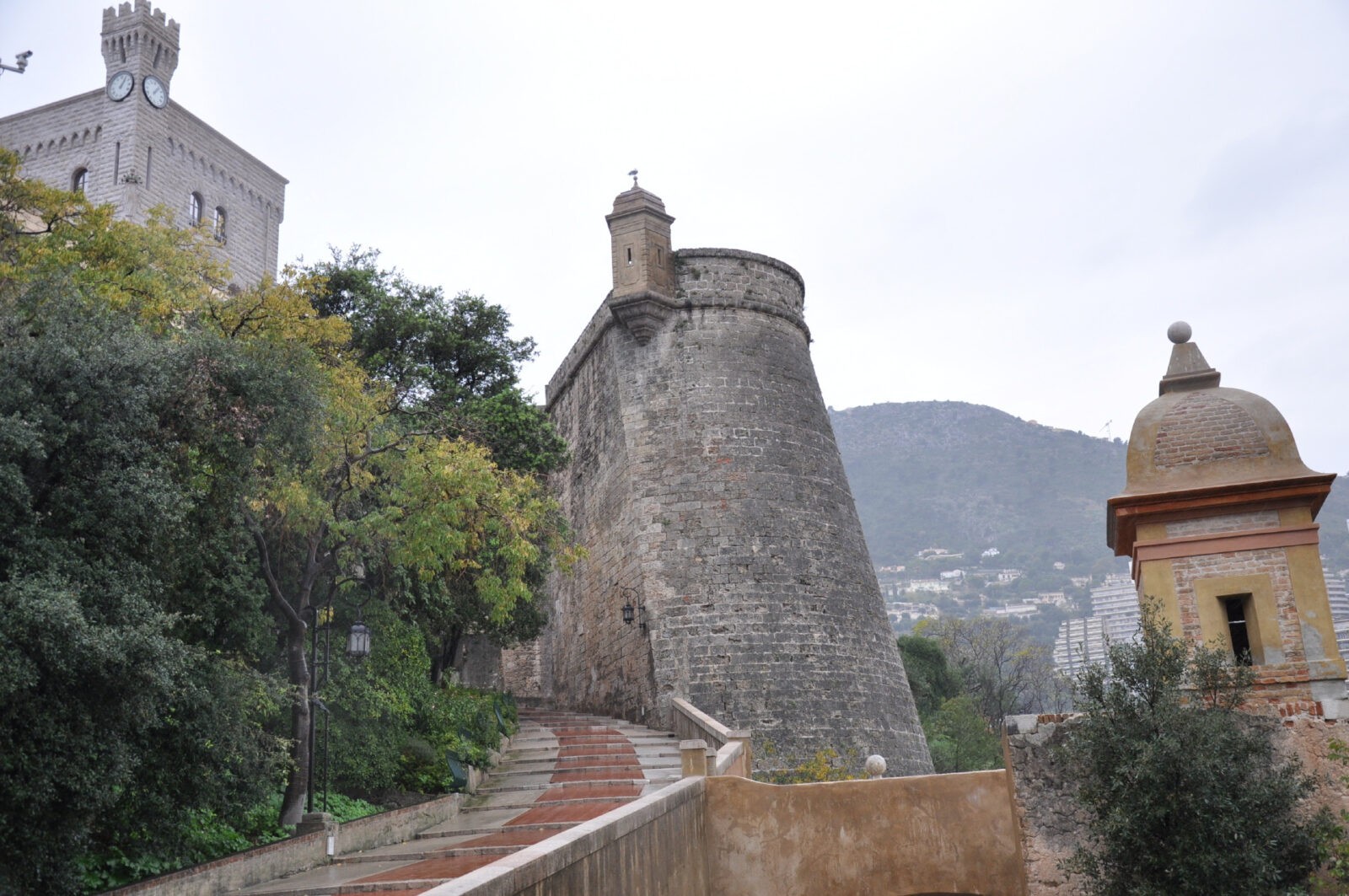 Pałac Grimaldich na miejscu zamku z XIII w., mury miejskie