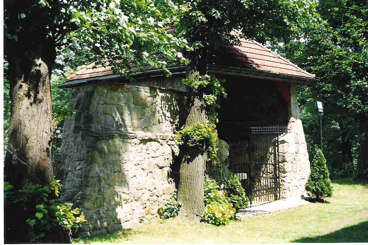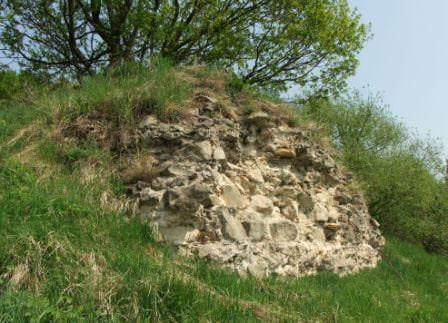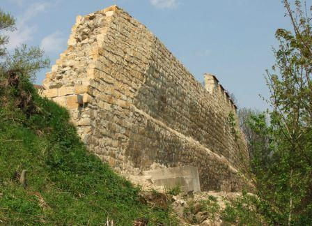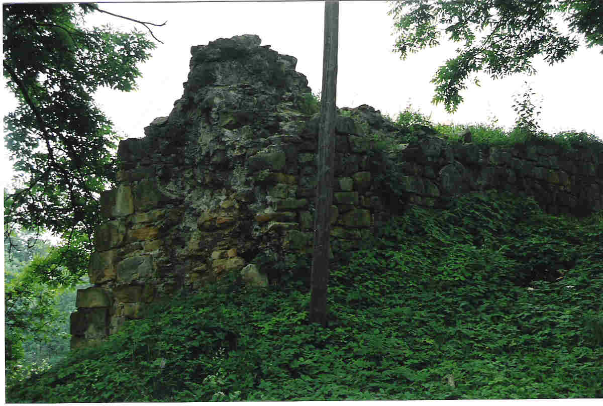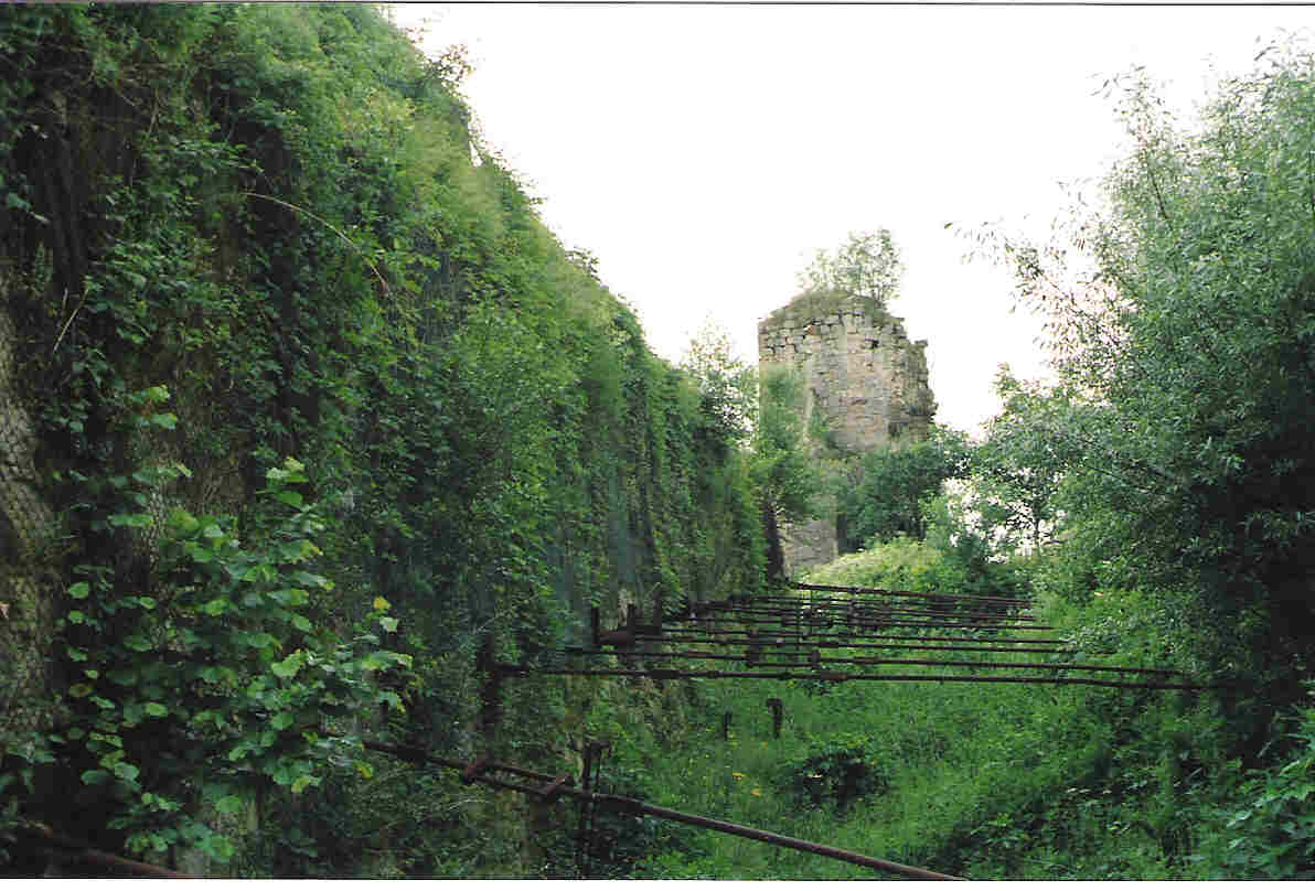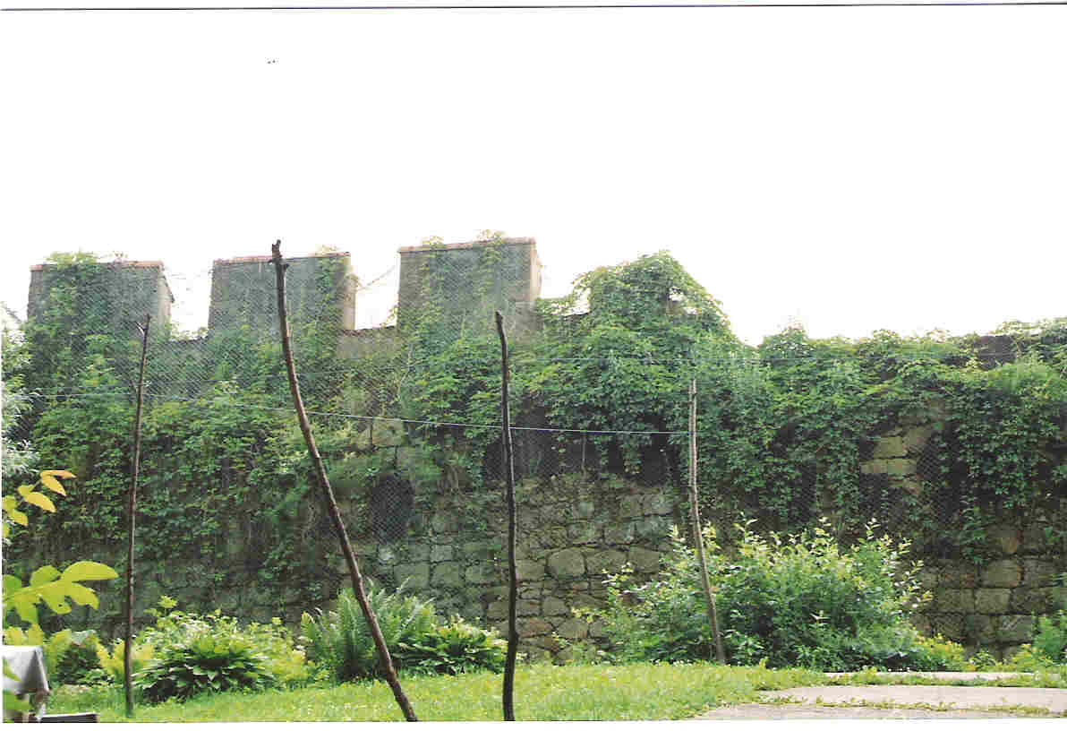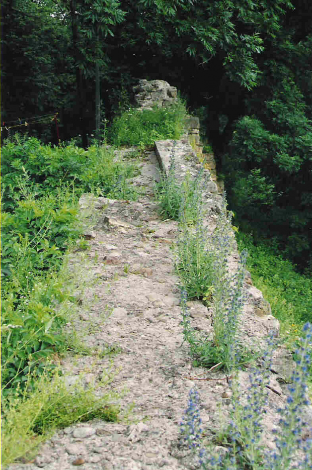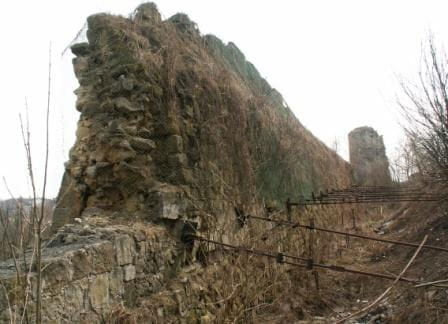 A tutaj mur i relikt baszty za słynnym zielonym ogrodzeniem