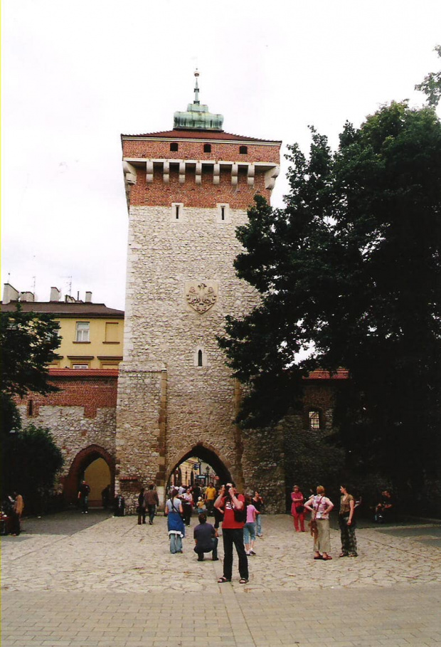 BRAMA FLORIAŃSKA - (inaczej Brama św. Floriana) w Krakowie pochodzi z początku XIV w. Liczy od gałki hełmu 34,5 m wysokości.