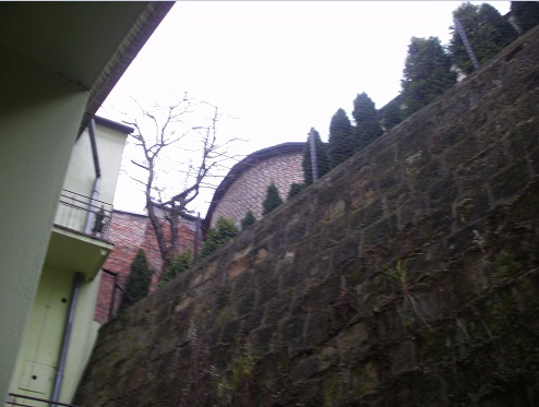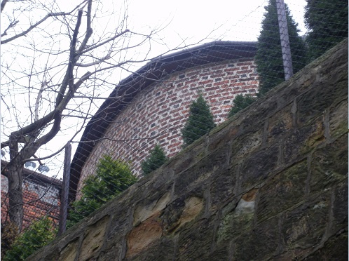 Baszta Książęca - w listopadzie 2013 r. nadal była "wchłonięta" przez zabudowę - jest dość słabo widoczna z dołu, z podwórka na tyłach kamienicy przy ul. Wałowej - przejście przez bramę - w 2013 r. zrobiłem te fotki, dość słabej niestety jakości z powodu warunków atm. i ostrego kąta, pod jakim widać basztę. Podobno można ją też zobaczyć z góry - z ogrodu na tyłach ul. Kapitulnej 2, ale teren ten nie jest ogólnie dostępny (2013).