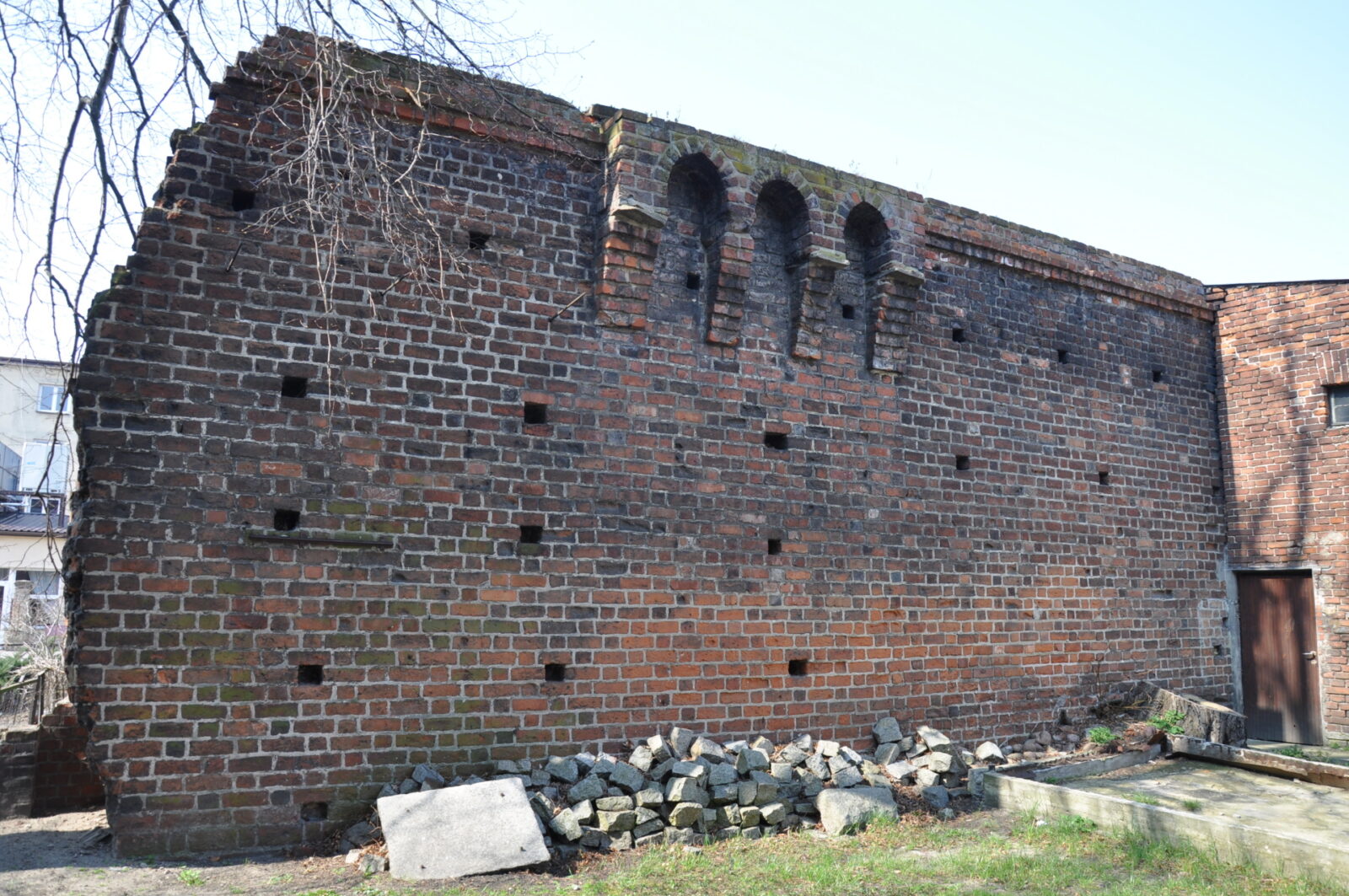 2. Mur na Konopnickiej stanowi oparcie dla domów i jest mało widoczny i jeszcze mniej widowiskowy.