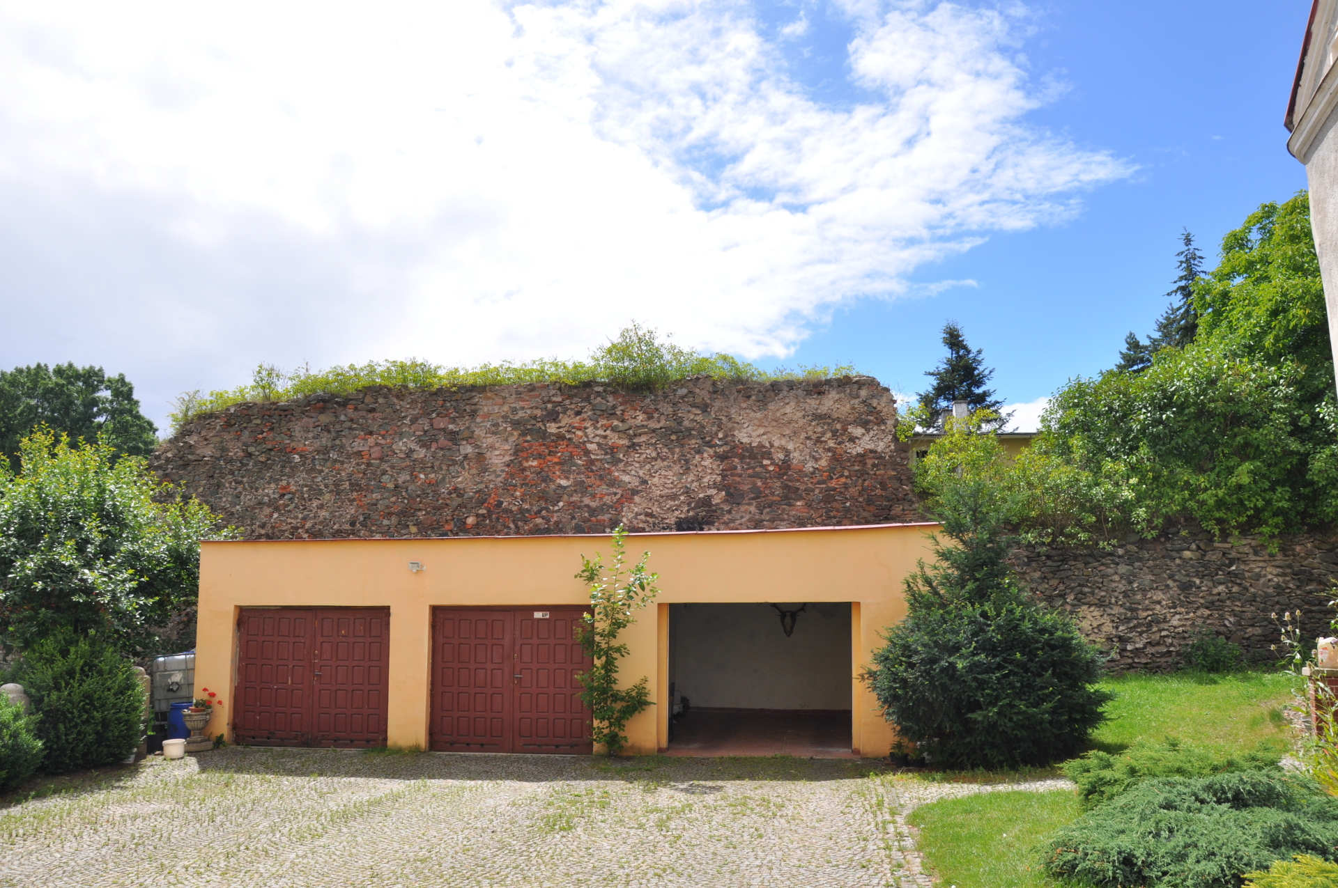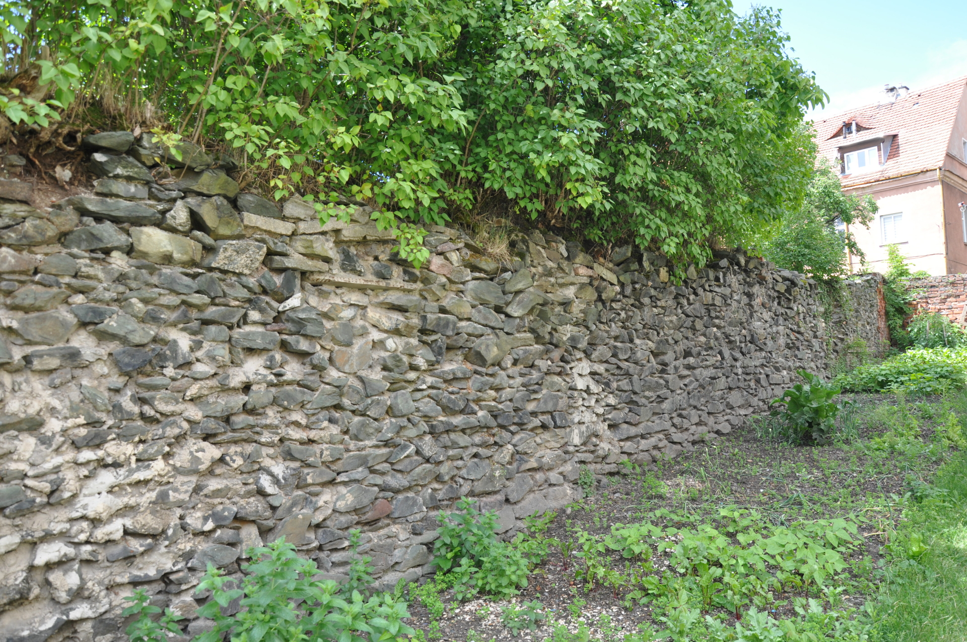 część murów na N miasta, niestety dostęp utrudniony (prywatne ogródki) + ściana zieleni