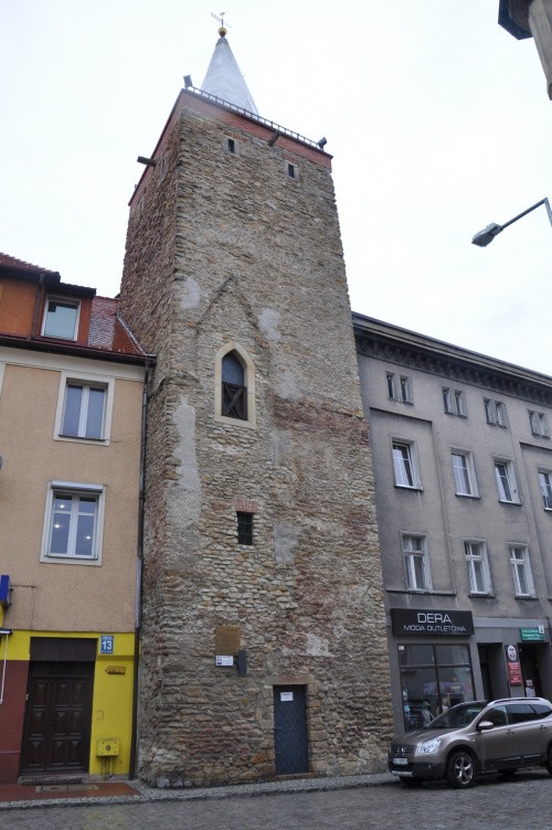Baszta Rycerska znajduje się u wylotu ulicy Rycerskiej, zwana także Czarną Wieżą. Założona na kwadracie o wymiarach 4,5 x 4,5 m, przykryta w 1608 roku ceglanym ostrosłupem. W 1843 roku przebudowana na dzwonnicę kościoła ewangelickiego. We wszystkich ścianach widnieją wąskie otwory strzelnicze.