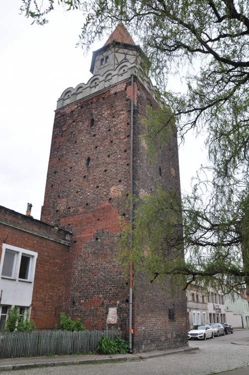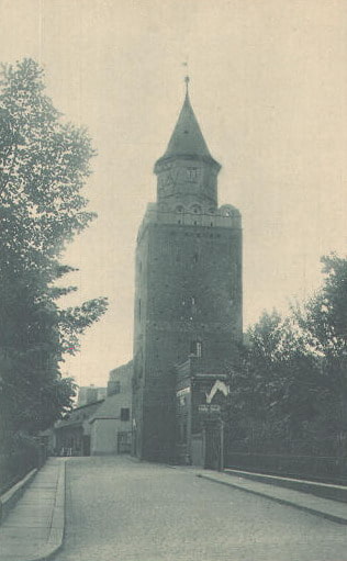 Baszta Tkaczy na przedwojennych pocztówkach, zbudowana została w około 1400 roku, wzmiankowana dopiero w roku 1572.