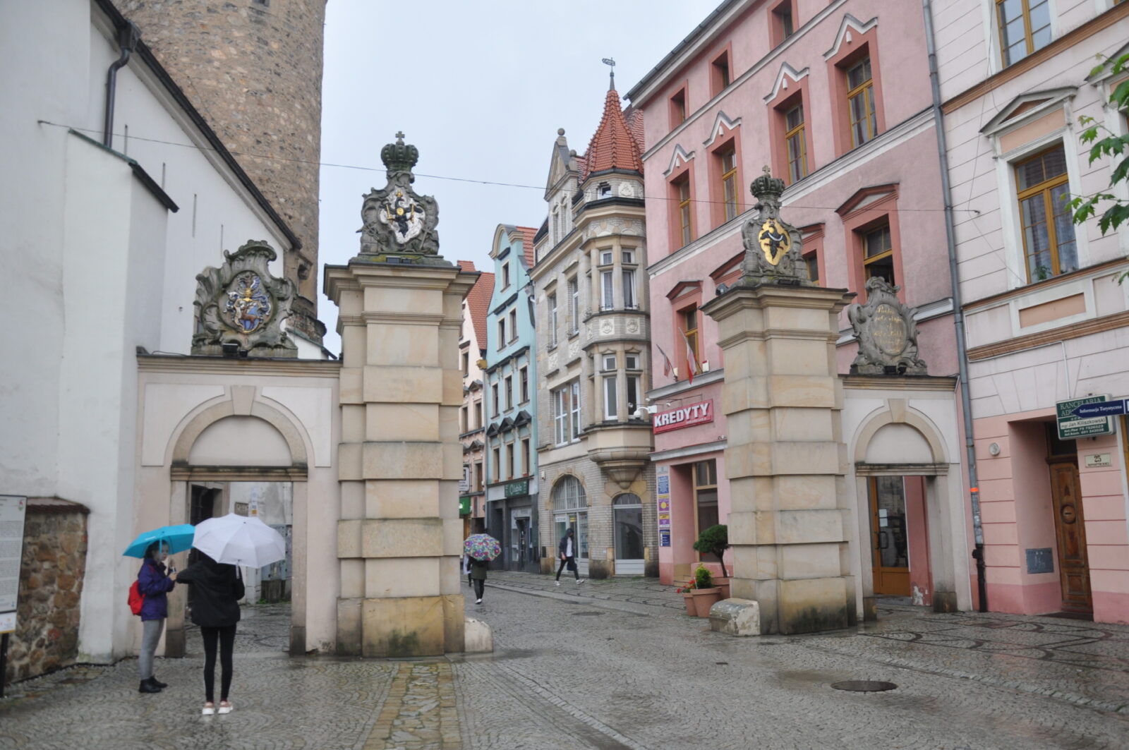 Brama Wojanowska i Baszta Wojanowska – stanowiły część średniowiecznego kompleksu obronnego który strzegł drogi do Wojanowa. Lochy pełniły funkcję więzienia. W 1480 r. wieża wskutek silnego wiatru zawaliła się grzebiąc 5 osób. Szybko ją odbudowano dodając zegar i kopułę z latarnią i w takim stanie przetrwała do dziś. Brama, zwana Wojnowską, którą strzegła owa wieża znajdowała się u wylotu obecnej ul. Konopnickiej. Wyburzono ją w 1755 roku, a obrys uwidoczniono w bruku ciemniejszą kostką. W roku 1756 postawiono tutaj barokową bramę spełniającą funkcję porządkowo-rogatkową. Na filarach umieszczono herby: pruski, śląski, miejski oraz inskrypcję. W 1869r. bramę rozebrano i przeniesiono do koszar przy ul. Obrońców Pokoju. Po renowacji w 1998 roku wróciła na dawne miejsce.
