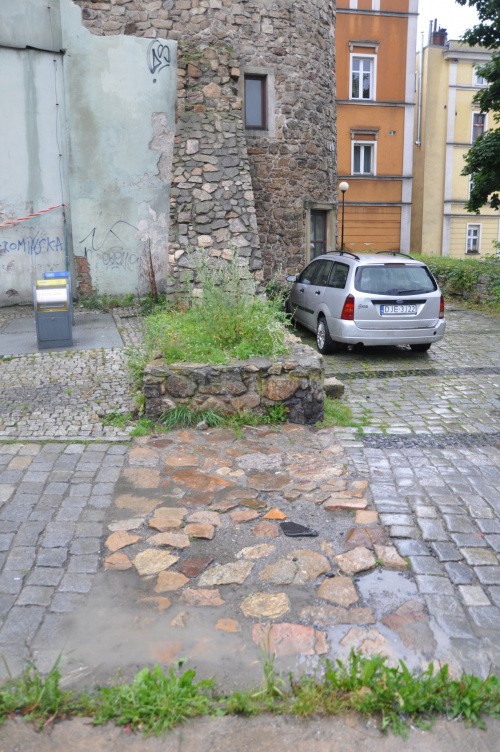 fragment wykorzystanych w zabudowie ciągu murów na ul. Jeleniej