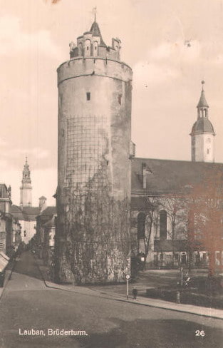 Lubań prawa miejskie wg prawa niemieckiego (magdeburskiego) otrzymał w 1220 lub około 1268 roku, dokładna data nie jest znana. Mury miejskie wzniesiono z kamienia i cegły w XIV wieku. Pierwotnie otoczone były fosą. Posiadały cztery bramy: Zgorzelecka, Nowogrodziecka, Mikołajska i Bracka. Mury miały grubość 2,4m, posiadały górny chodnik i wzmocnione były półkolistymi basztami. W 1683 roku zbudowana pod czterema bramami mosty zwodzone. W 1846 roku dzisiejsza ulica Spółdzielcza była uliczką ślepą i na prośbę jej mieszkańców wykuto w murze Bramę Żytawską. Do chwili obecnej zachowała się cylindryczna Wieża Bracka oraz fragmenty murów z basztami w zachodniej i północnej części miasta, konserwowane w latach 1964-1965.