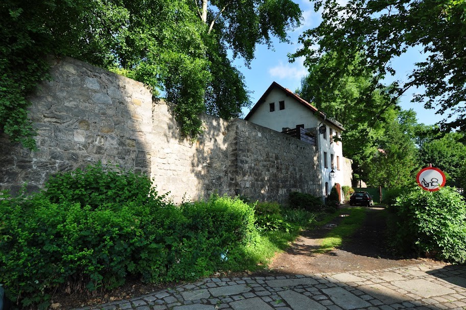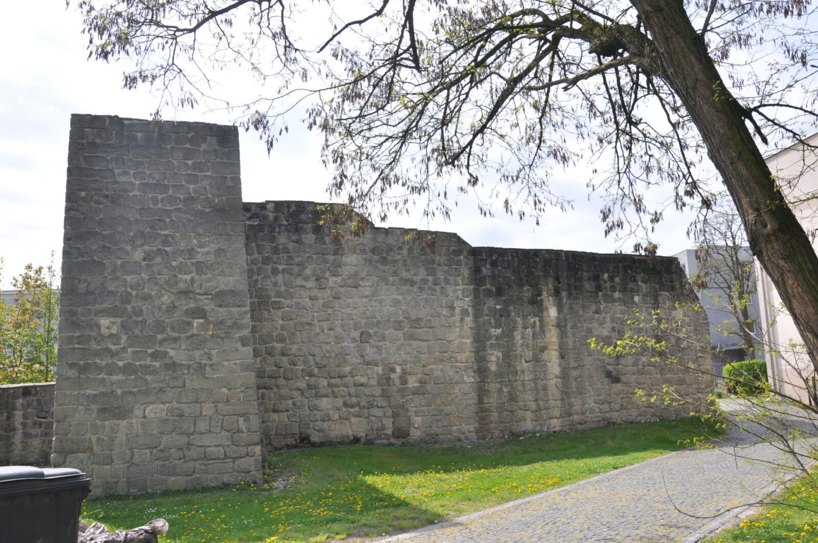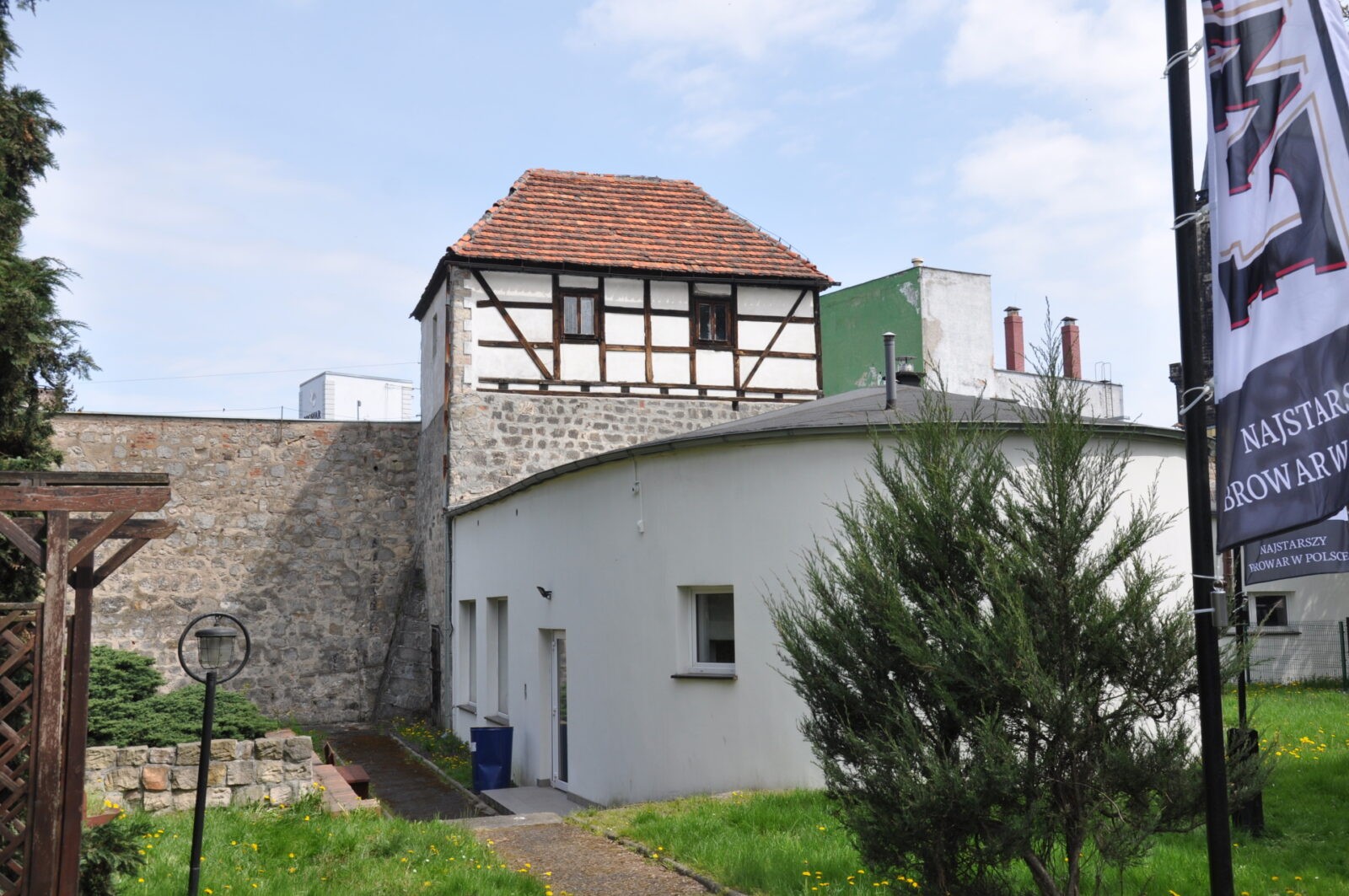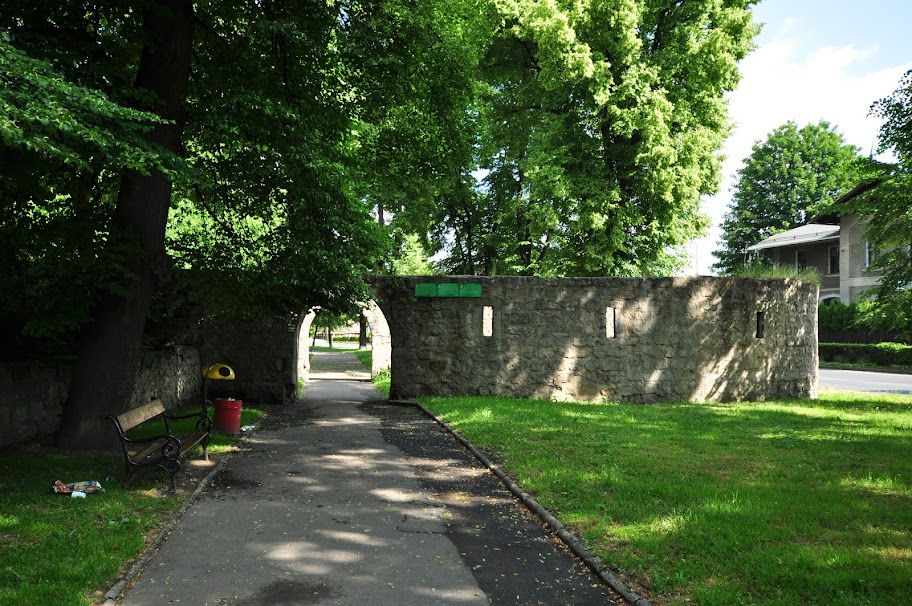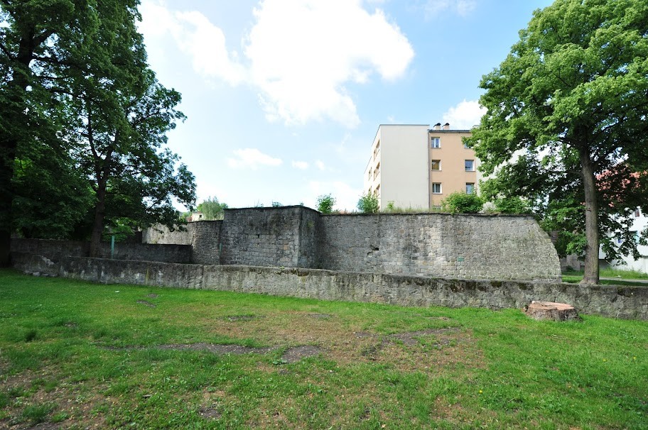 o odcinek muru widziany od strony browaru (mniej więcej na wysokości bastei z białym szachulcem)