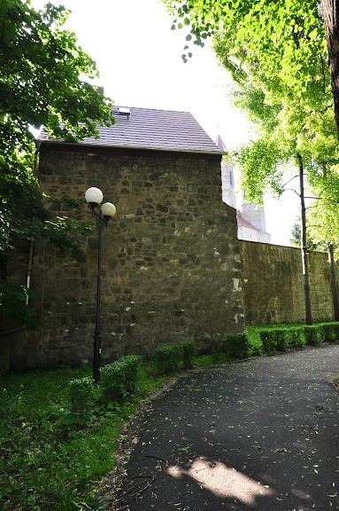 Mury na wysokości kościoła Franciszkanów.