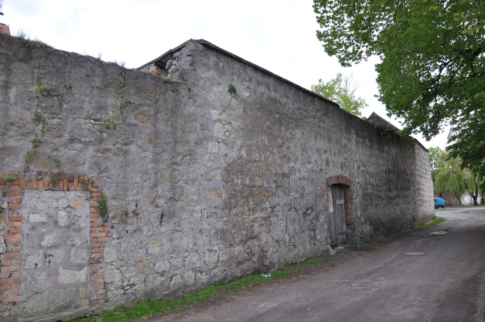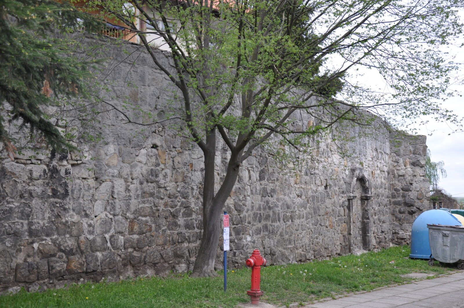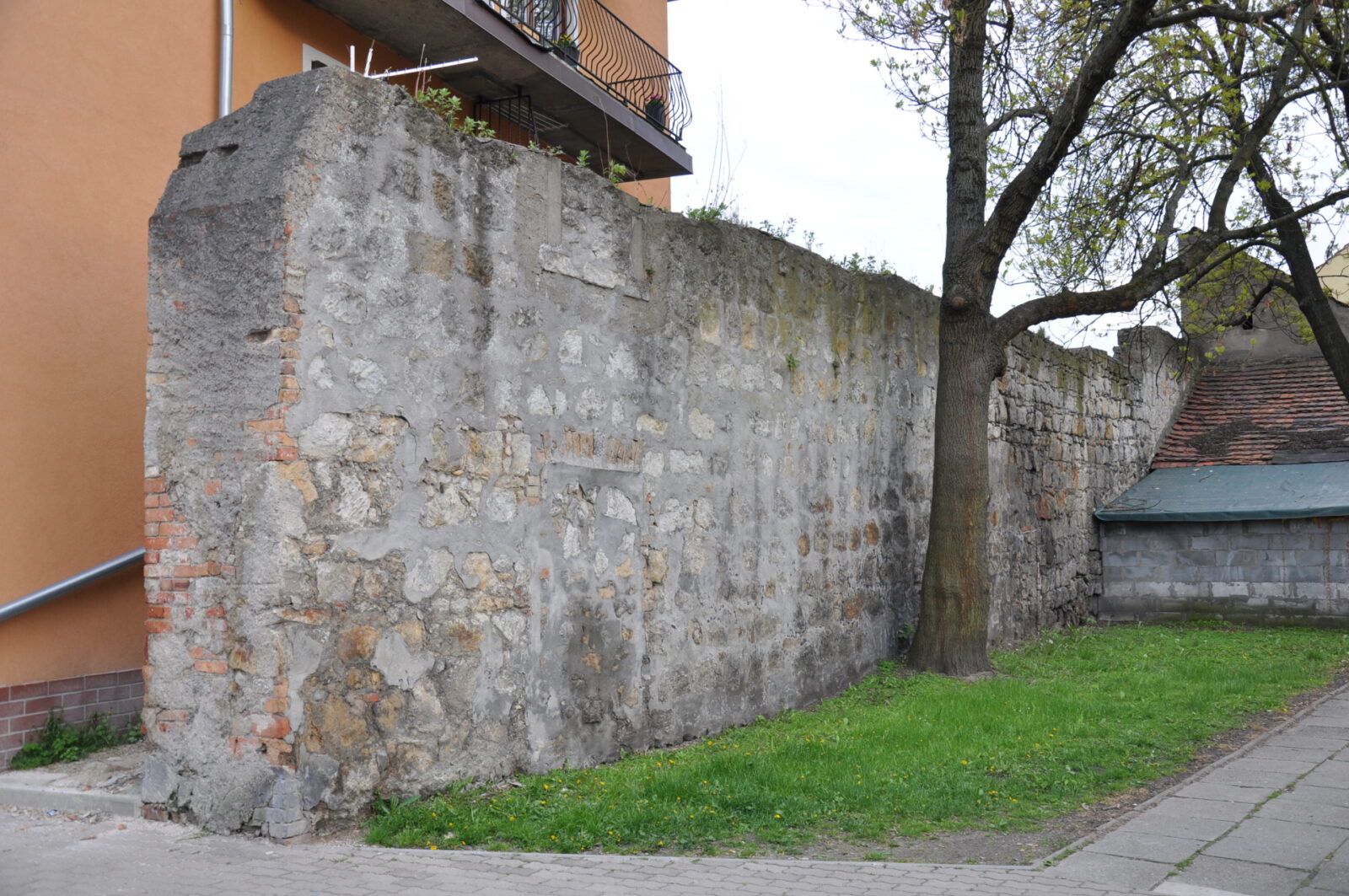 tu następuje część wspólnych murów, klasztornych sprzężonych z murami miejskimi